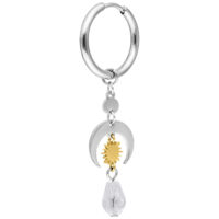 Sold as a pair, these hoops show their full effect especially in the lobe, where the individual elements can move freely and stand out. A distinctive ear jewelry piece with celestial symbolism and elegant lightness.