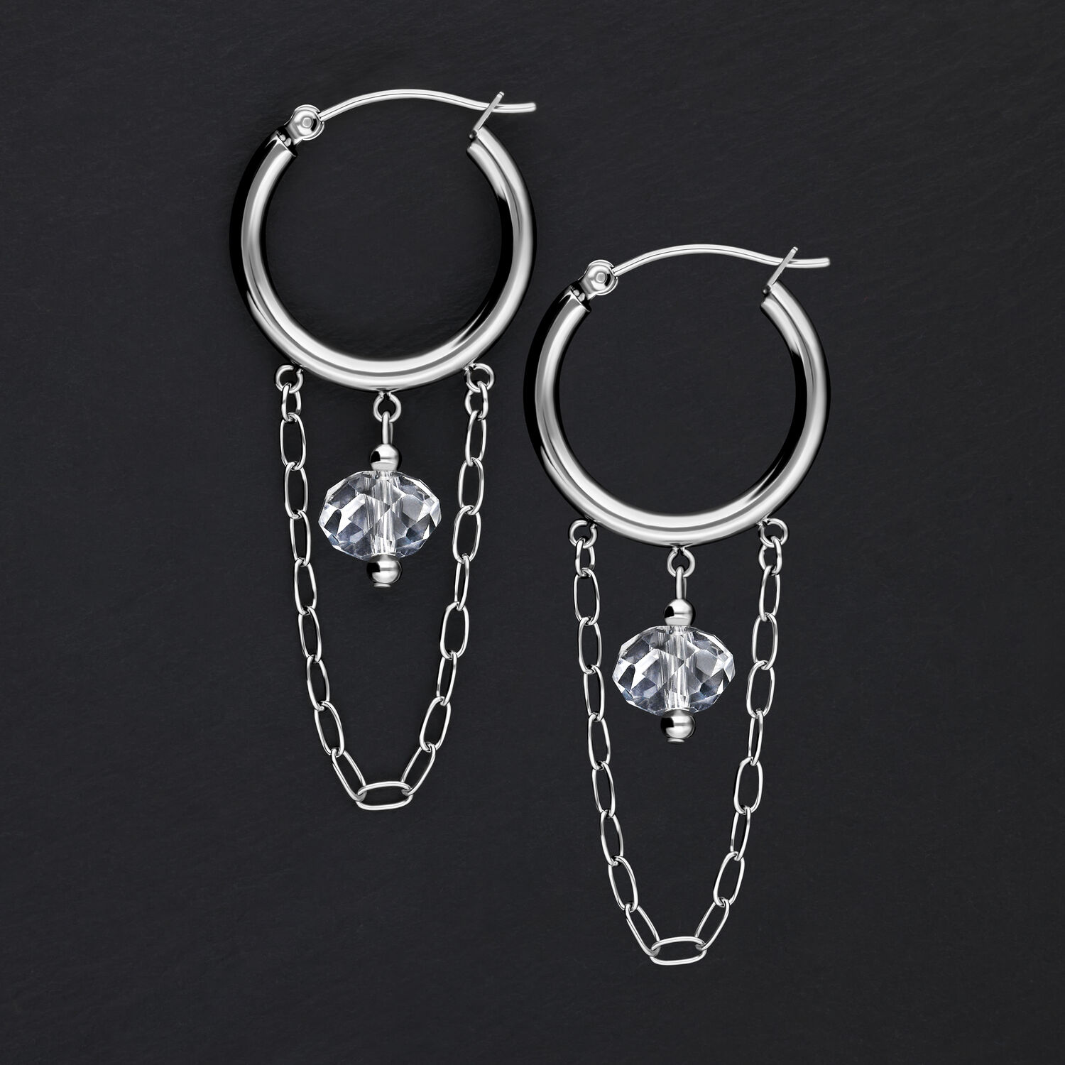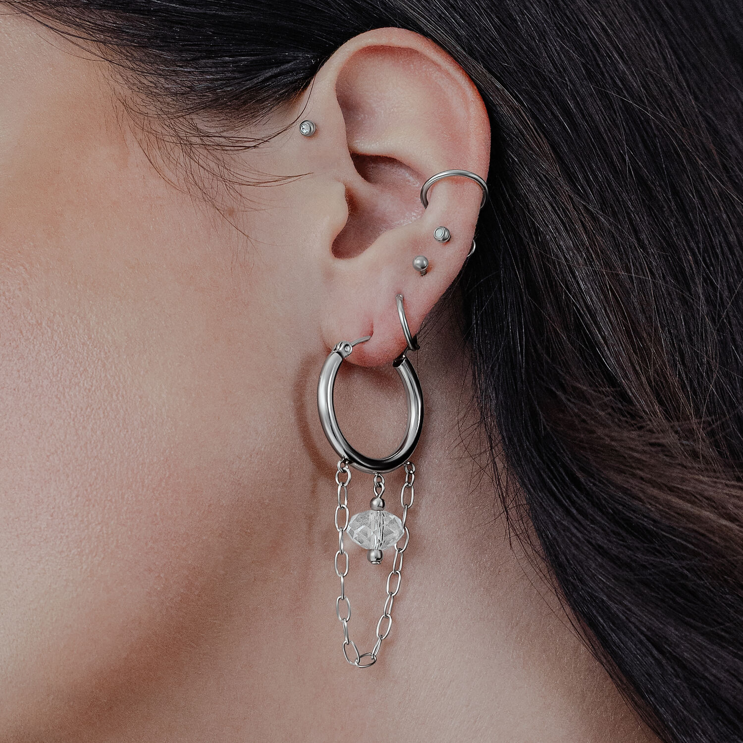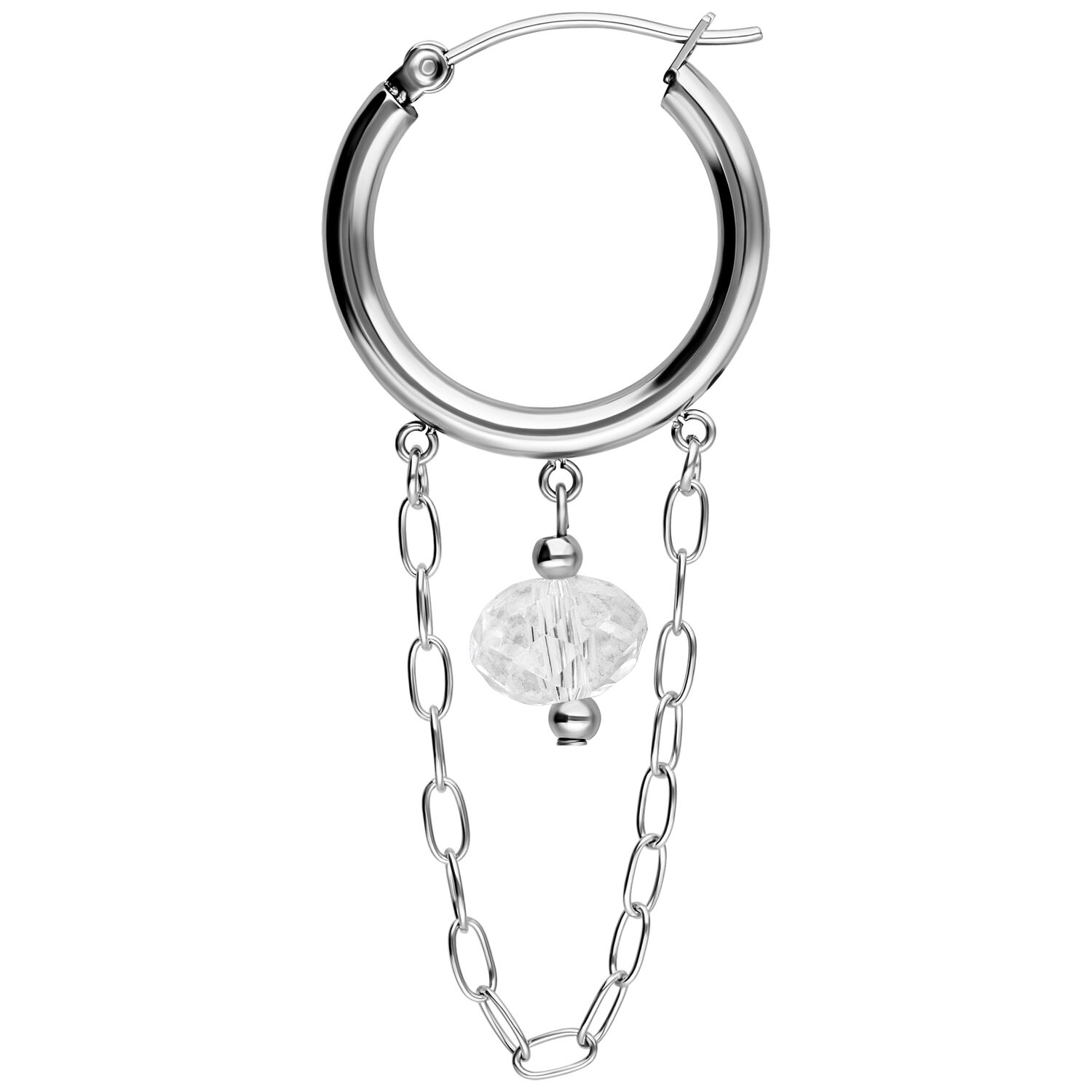 The Edgy White Stone Hoops are a must-have for anyone who loves bold earrings with a touch of modern elegance. The design combines high-quality hoops with two delicate chain details and a faceted white crystal stone – a stylish eye-catcher for any ear. Available in classic silver or elegant gold, these hoops perfectly complement casual street styles, minimalist looks or sophisticated outfits.