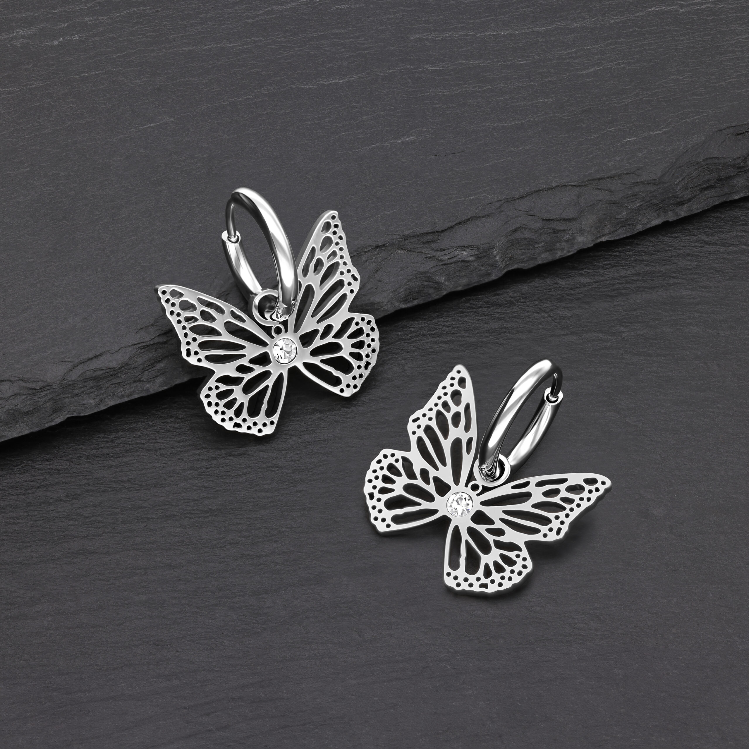 Playful and elegant at the same time – our Little Butterfly Hoops are a real eye-catcher. These small hoop earrings enchant with a delicate butterfly that gently sways on the hoop with every movement, reminiscent of the natural movements of a real butterfly. The butterfly’s body is decorated with a small crystal for a sparkling accent.