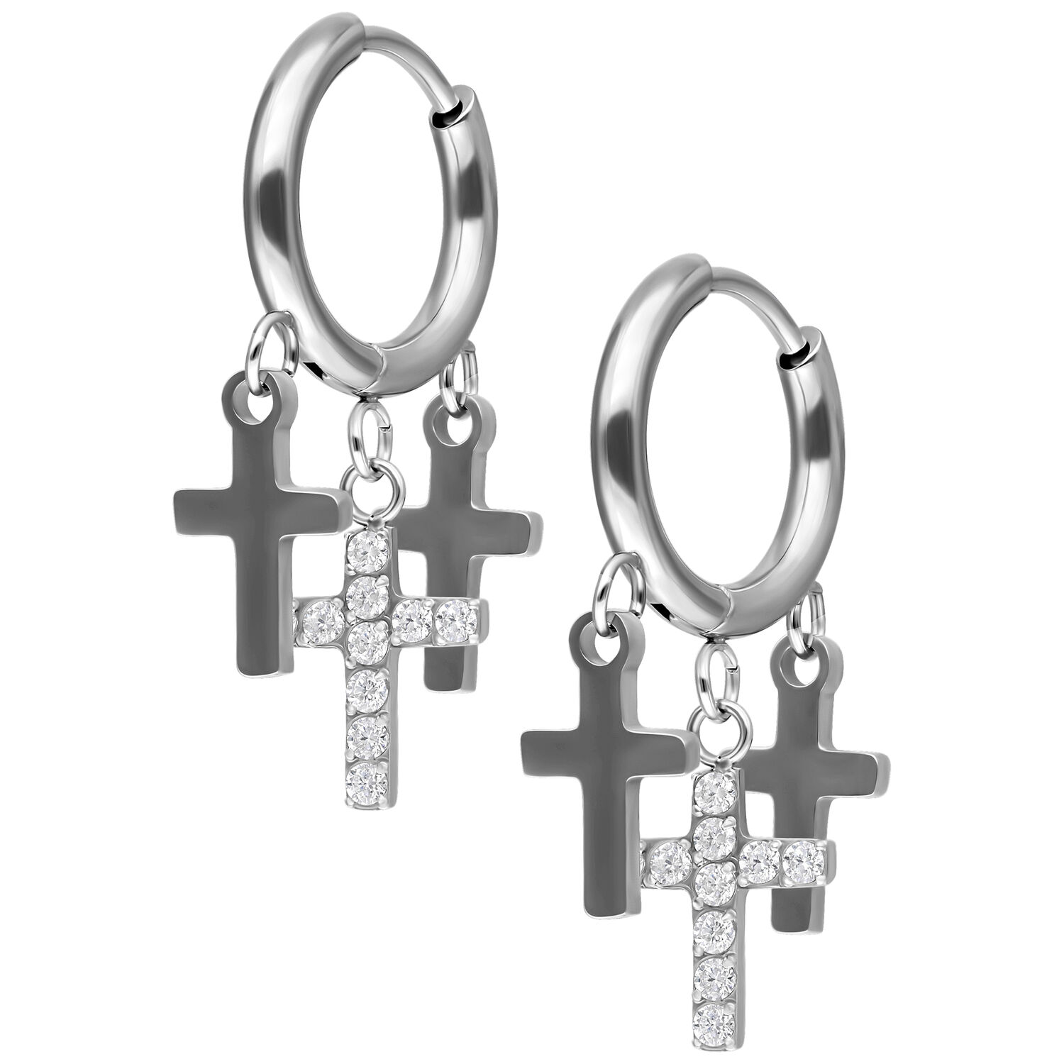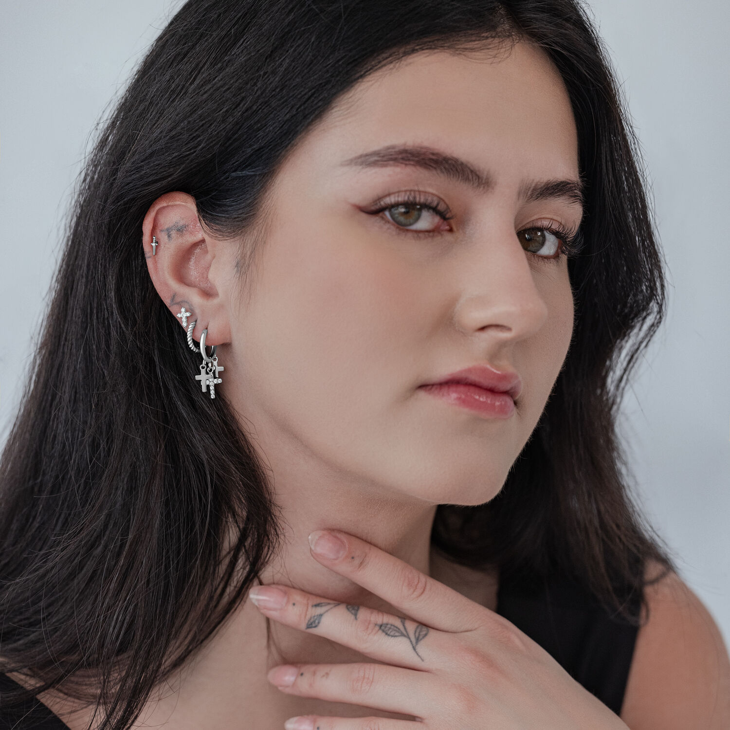 Our earcatchers: Small hinged hoop earrings with cross charms – an absolute must-have for anyone who loves to make a stylish statement.