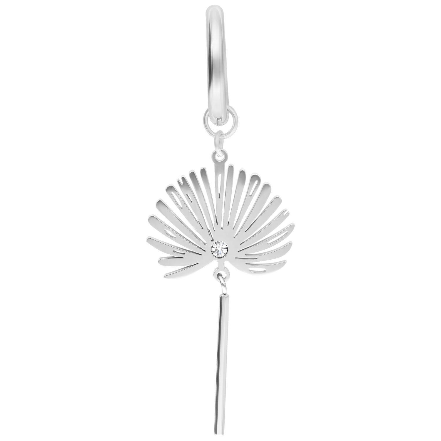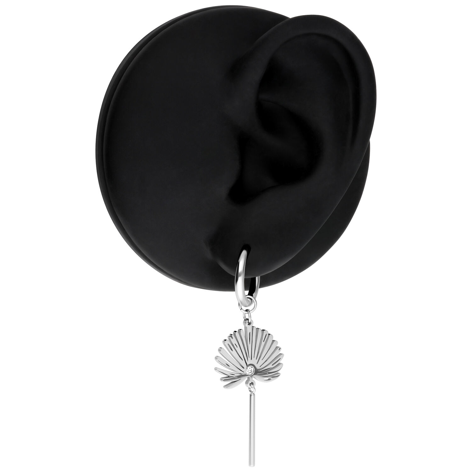 These hoops, crafted from high-quality stainless steel, showcase a finely cut pendant in the shape of a stylized petticoat leaf. A sparkling cubic zirconia stone at the center adds a touch of glamour, while the slim bar pendant below brings graceful movement to the design. The blend of lightness and shine makes these earrings the perfect choice for summer outfits, festive occasions, or your personal statement style.