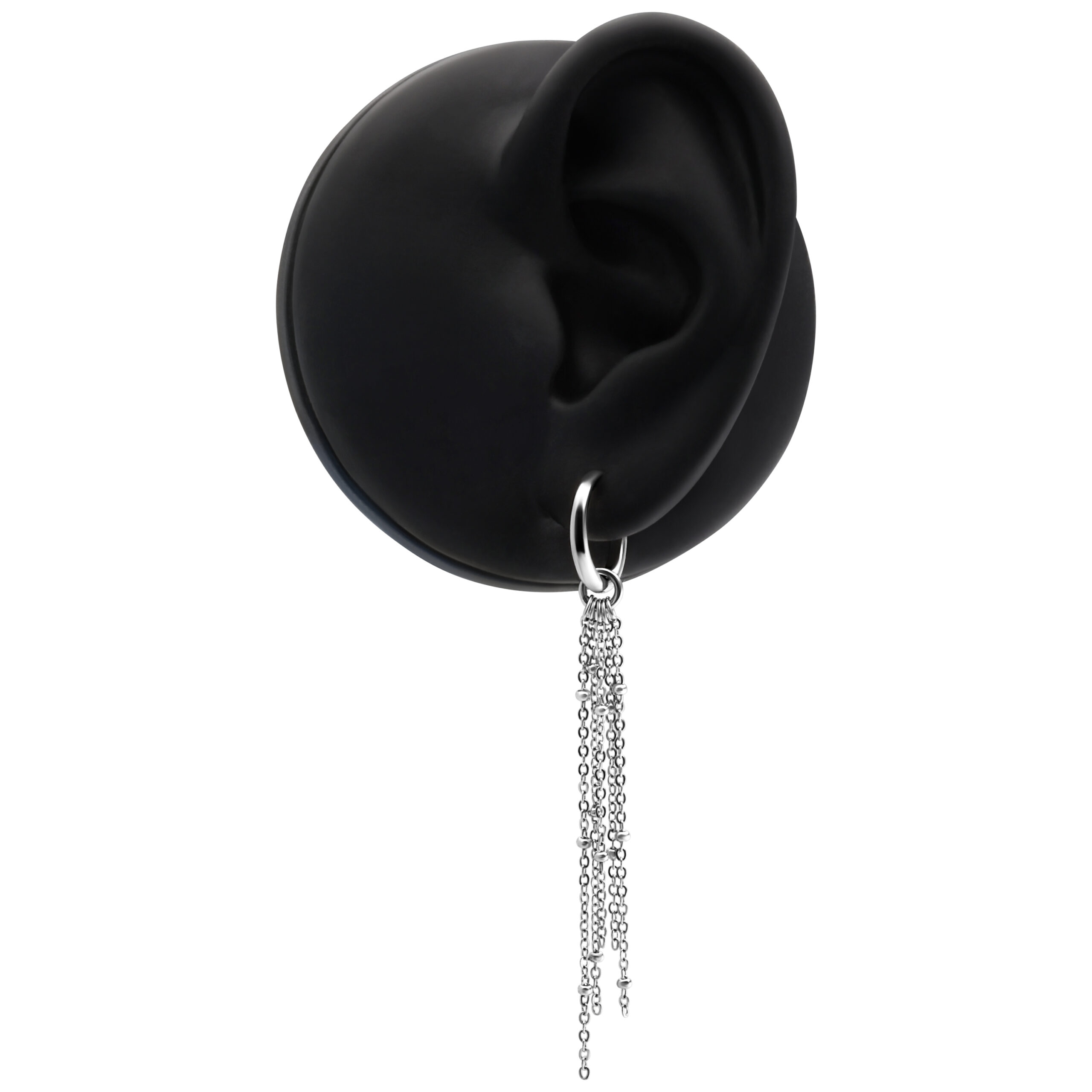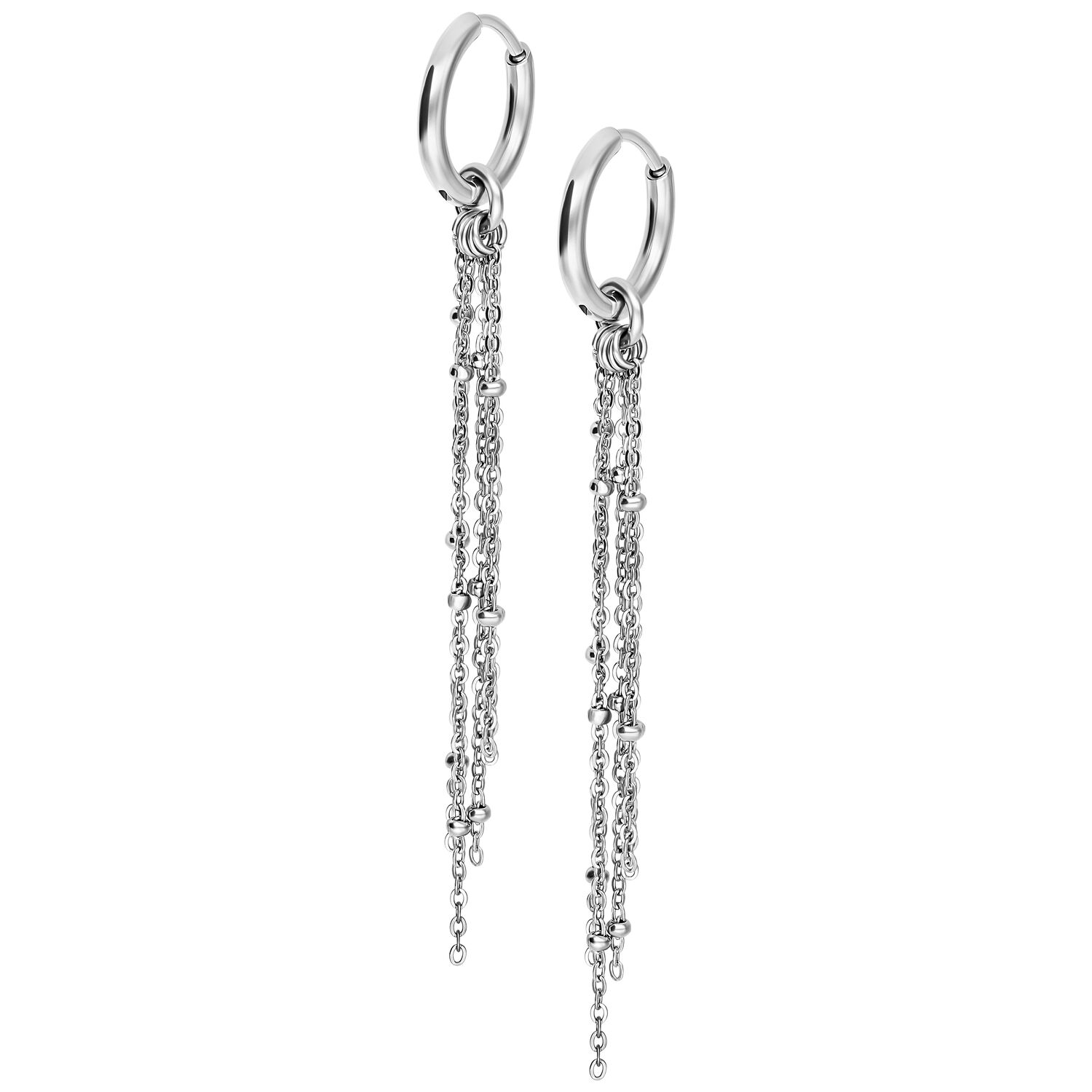 They feature a small hoop with three delicate chains attached, gently swaying with every movement to create a captivating look. With a hoop diameter of 10.0 mm, they are suitable for both standard ear piercings and tunnels – a true all-rounder for your individual style.