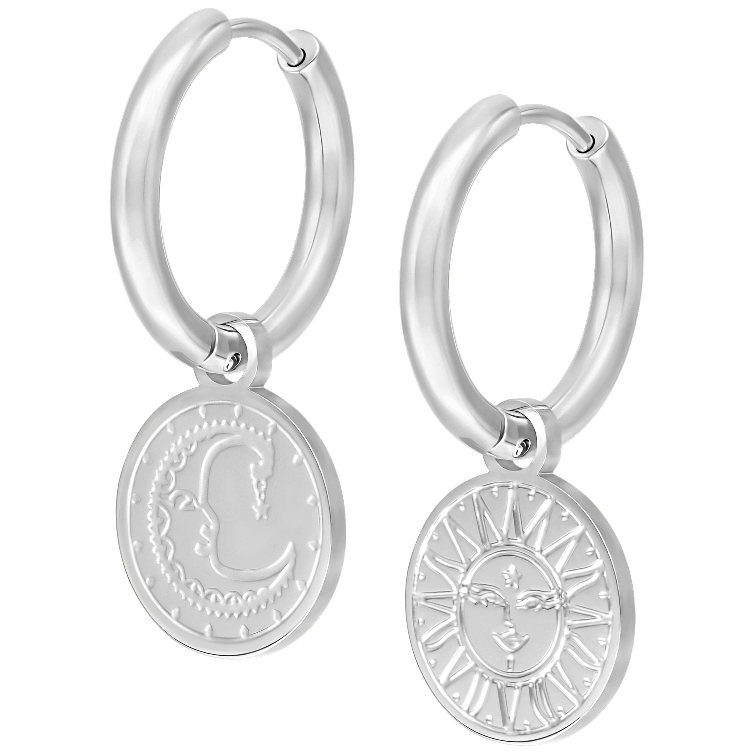 We have the absolute trend jewellery for you. These little creoles come with a cool upgrade, since the creoles possess beautiful charm hangers that can be easily fitted into the ring-shaped earrings. In that way, you can embellish your outfit by adapting your ear jewellery. Whether rocky, mystic, classic, bohemian or elegant, there is something for everyone. Get your favourites and score in all aspects!