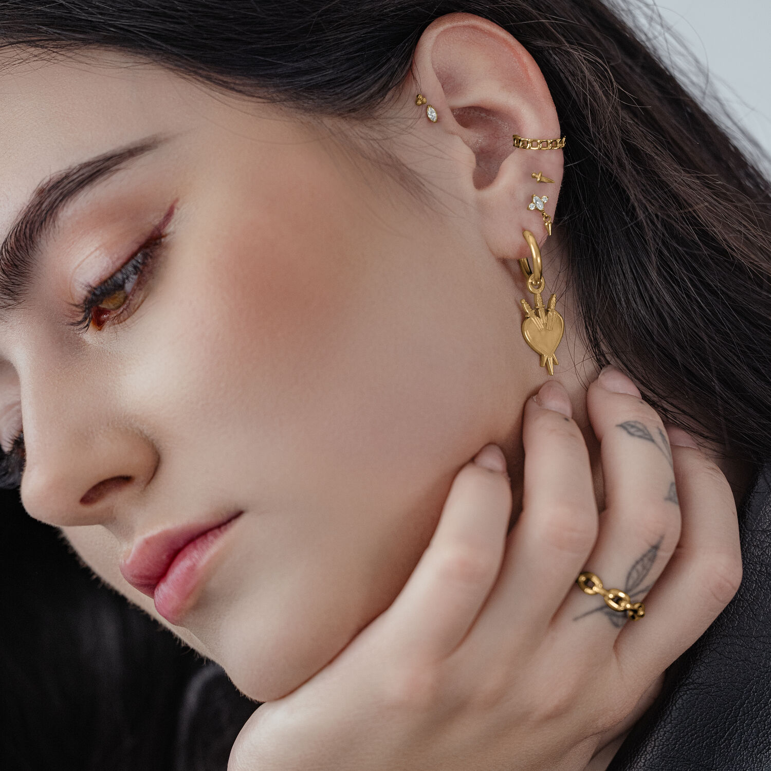 We have the absolute jewellery trend up our sleeves for you. These small hinged hoop earrings with cool upgrades are easy to clip on and can be combined with any outfit. Whether rocky, mystical, classic, bohemian or elegant, there’s something for everyone here. Grab your favourites and score points all along the line! Tip: Can also be worn in a tunnel!