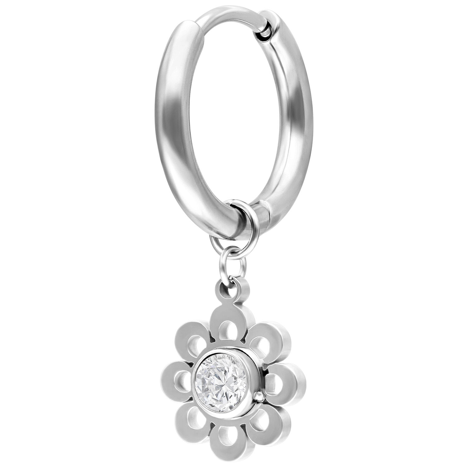 Blooming beauty! Our Mini Crystal Flower Hoops are small hinged hoops with delicate flower pendants that shimmer with sparkling crystals, adding a radiant touch to any look. The feminine design combines playful elegance with a modern twist – perfect for those who love floral details and dazzling highlights.