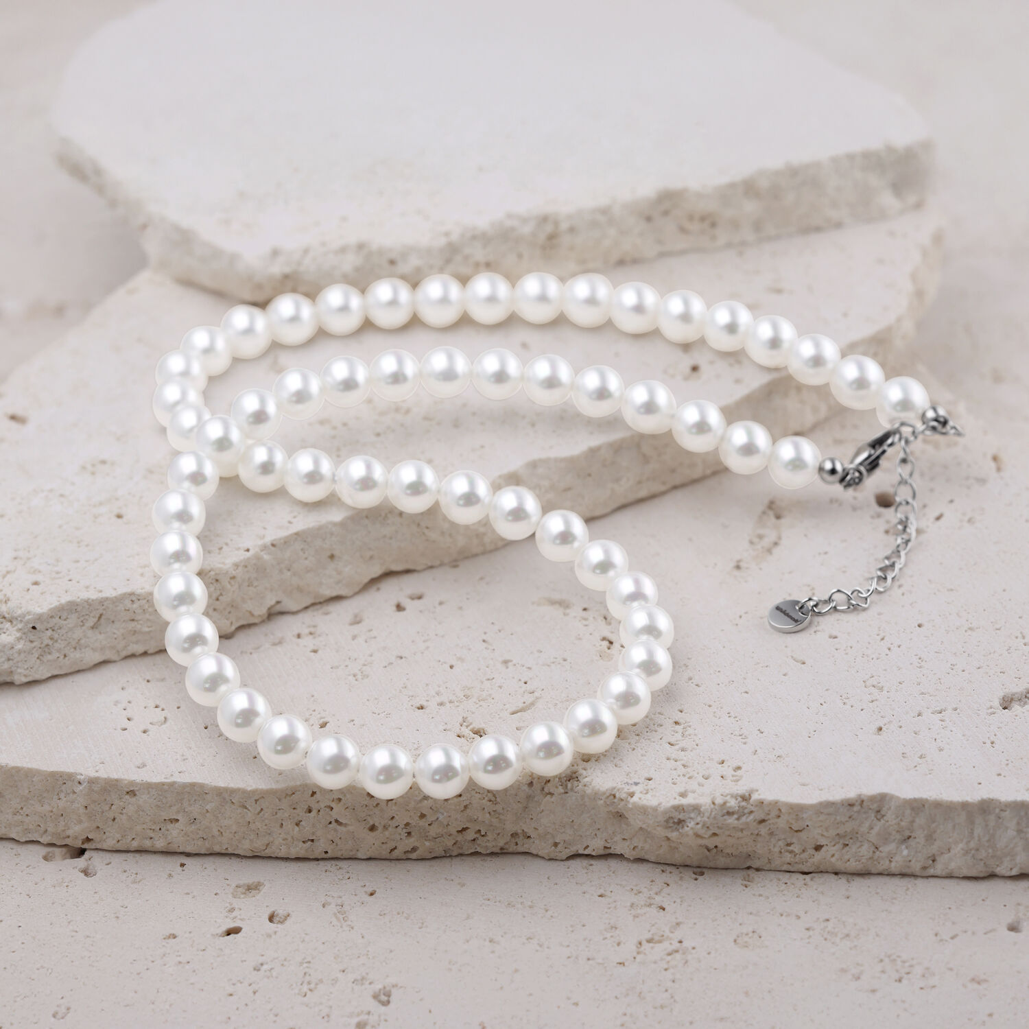 This elegant pearl necklace, crafted from high-quality 316L surgical steel, combines timeless design with lasting quality. The perfectly polished synthetic pearls, with a diameter of 7 mm, are available in sophisticated silver or warm, shimmering gold, adding a stylish accent to any outfit. Made from nickel-free, skin-friendly material, the necklace offers exceptional wearing comfort and retains its elegant shine even with daily use. Thanks to its minimalist, unisex design, it can be styled in countless ways – whether as a fashionable highlight for everyday wear or as an elegant companion for special occasions. Perfectly complemented by other pieces from our collection, it’s sure to become your personal favorite accessory.