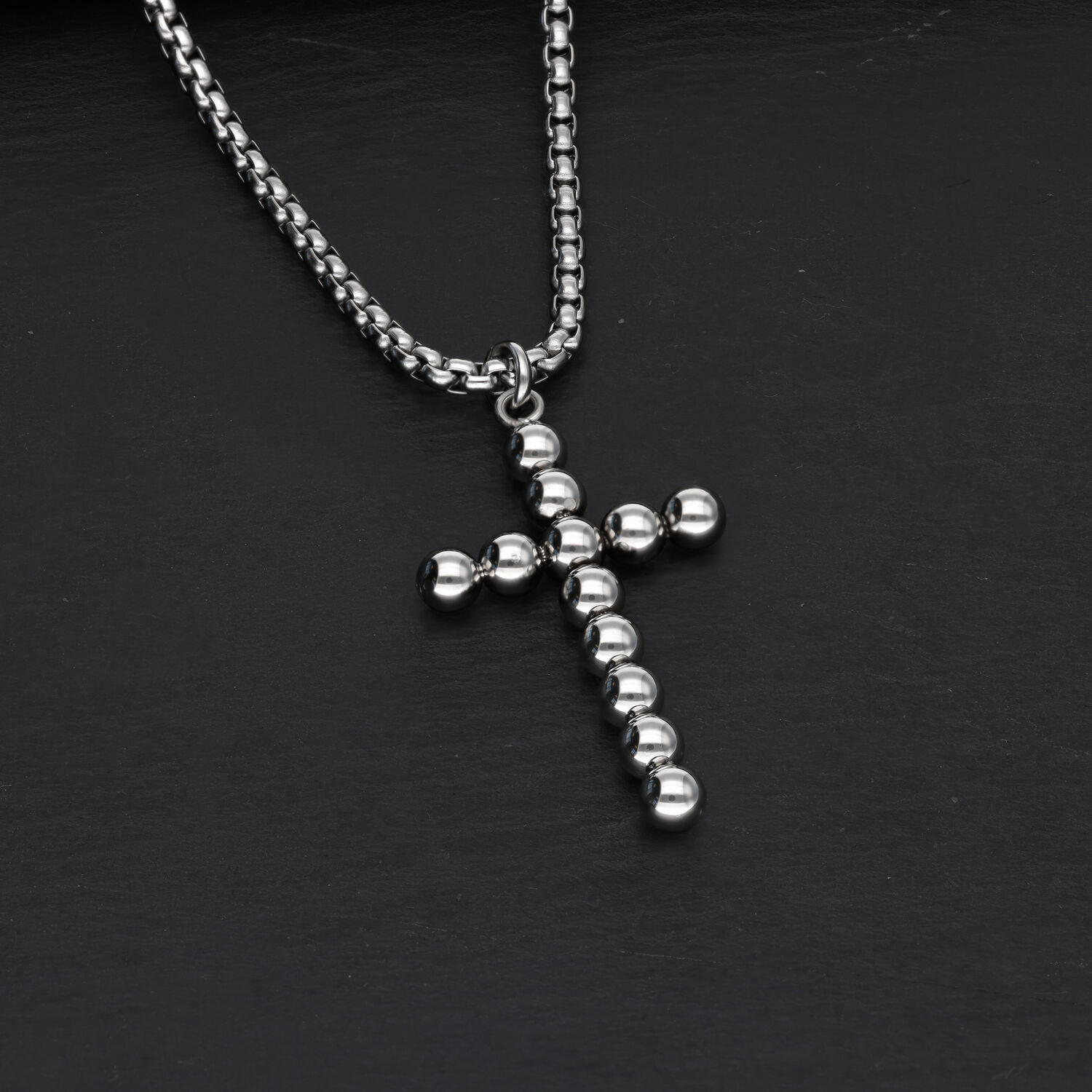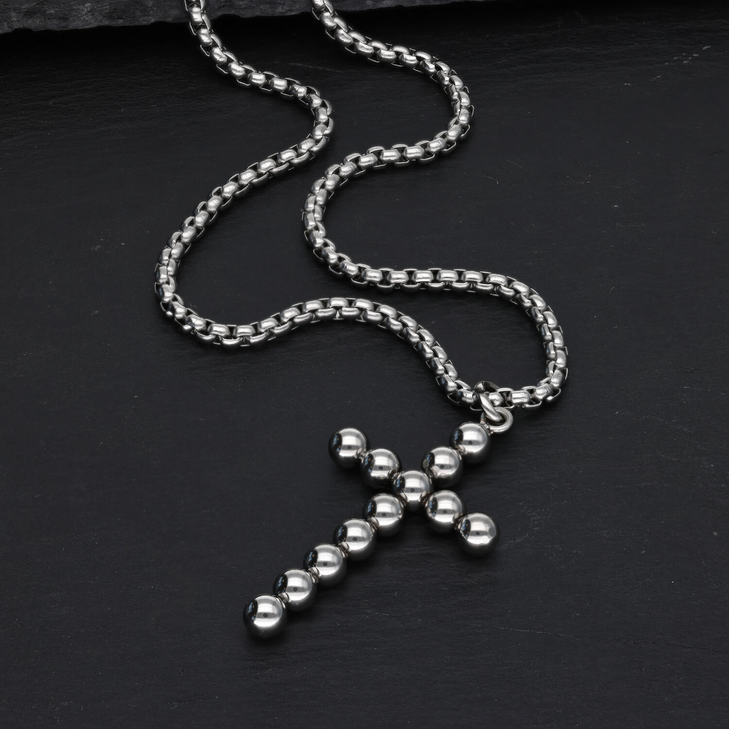 Whether your look is casual, sporty, classic, or extravagant, our stylish Bubble Cross Necklace will make you a true STEEL icon. This piece of jewelry combines modern coolness with simple elegance. Make it your favorite accessory and pair it with our Bubble Cross Hoops or our Bubble Ring, for example.