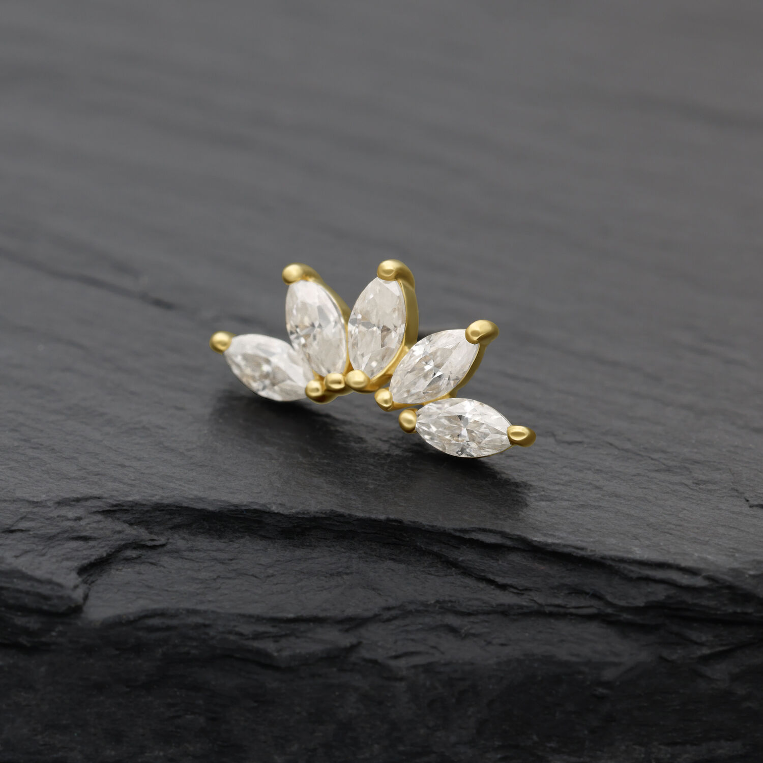 A timeless piece for those who appreciate fine gold body jewelry with delicate curves and radiant sparkle.