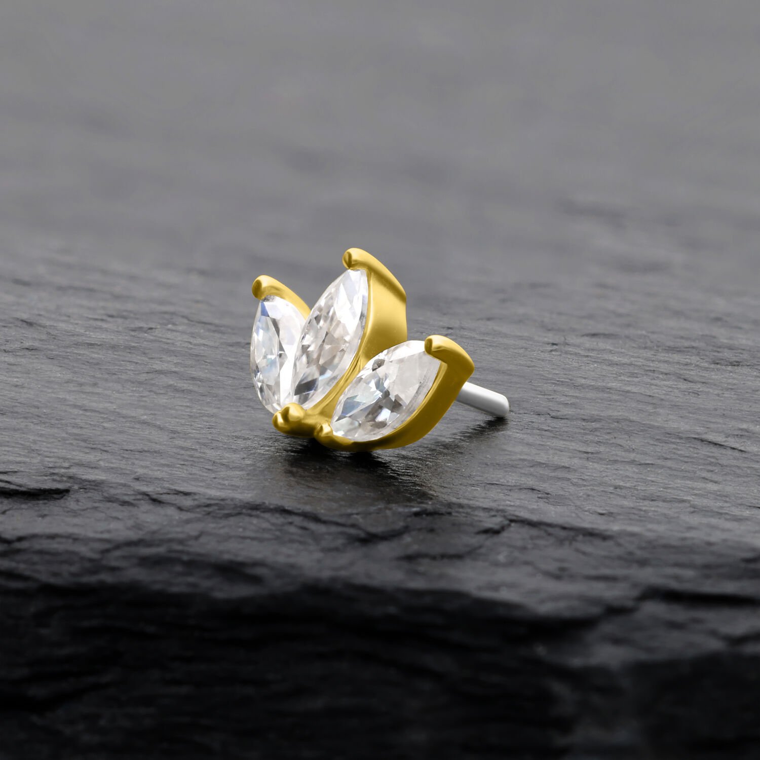 With its push-fit system, the attachment is easy to insert and stays securely in place – perfect for piercings such as helix, lobe, tragus, or conch. The lotus design symbolizes purity, balance, and renewal, making this piece a modern and meaningful accent for any style.