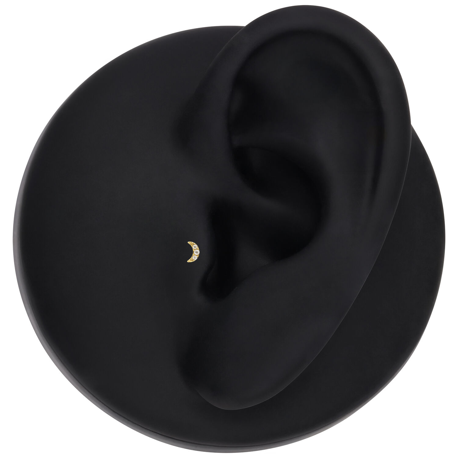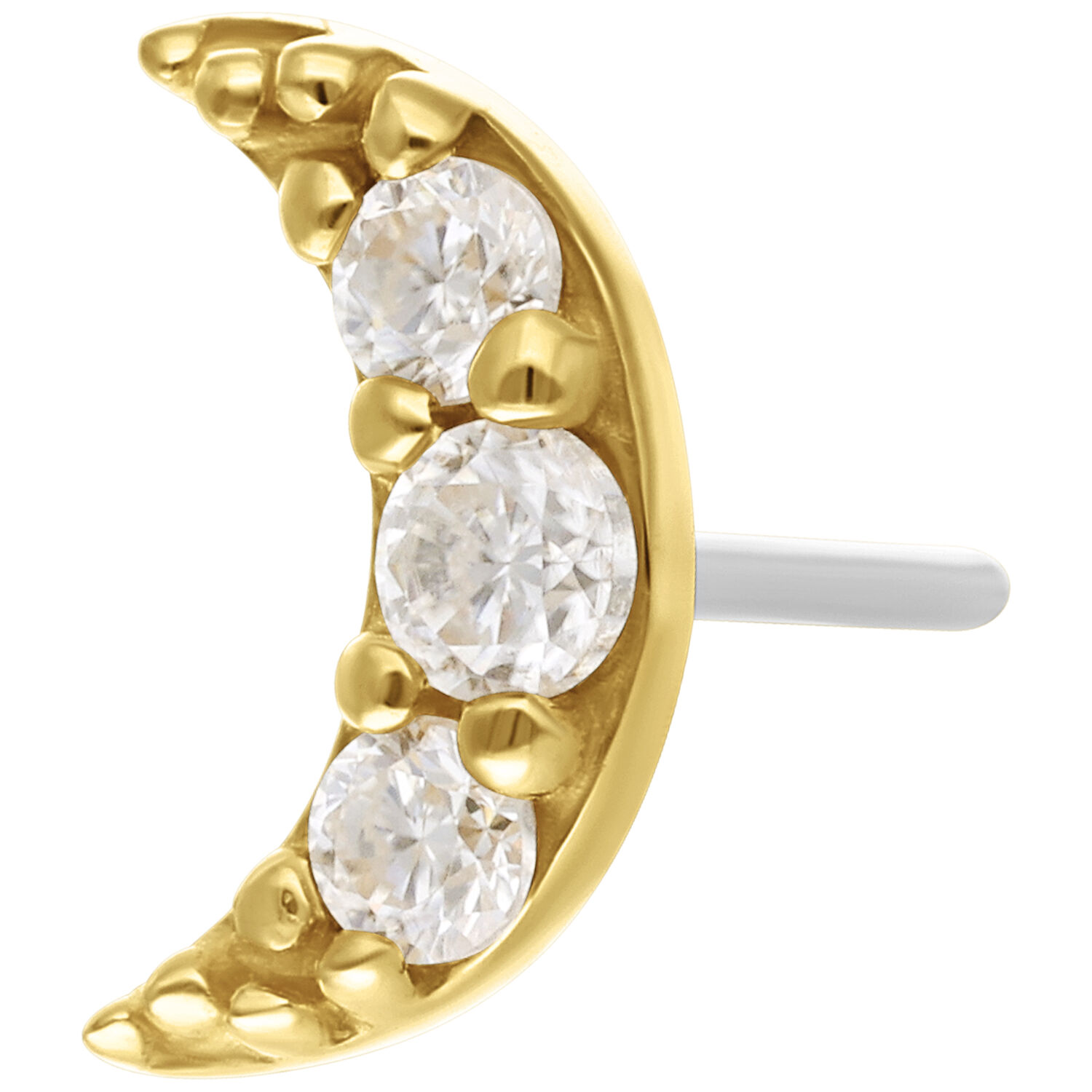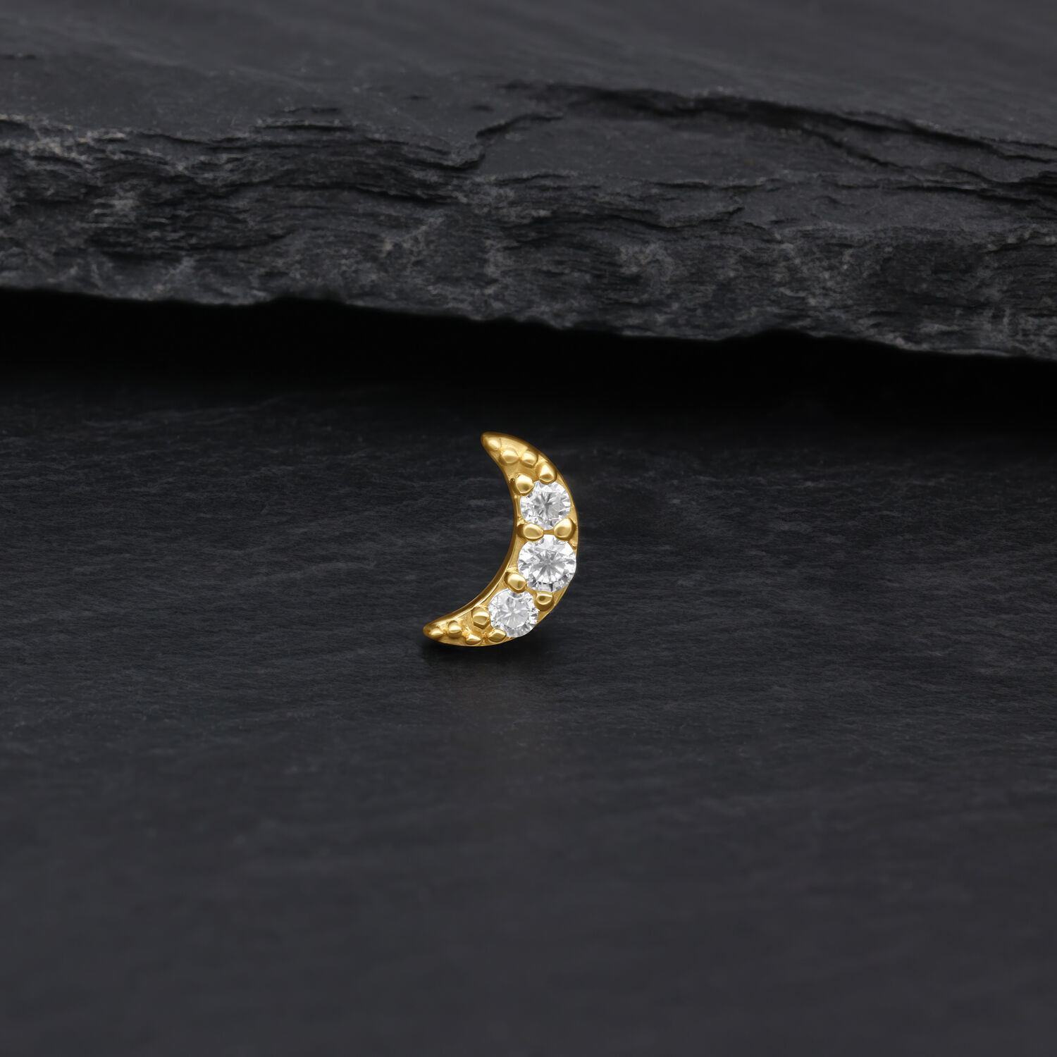 The push-fit mechanism allows for easy and secure insertion—no threading required. Perfect for placements such as helix, lobe, tragus or conch, where the moon design adds a soft yet luxurious accent to any style.