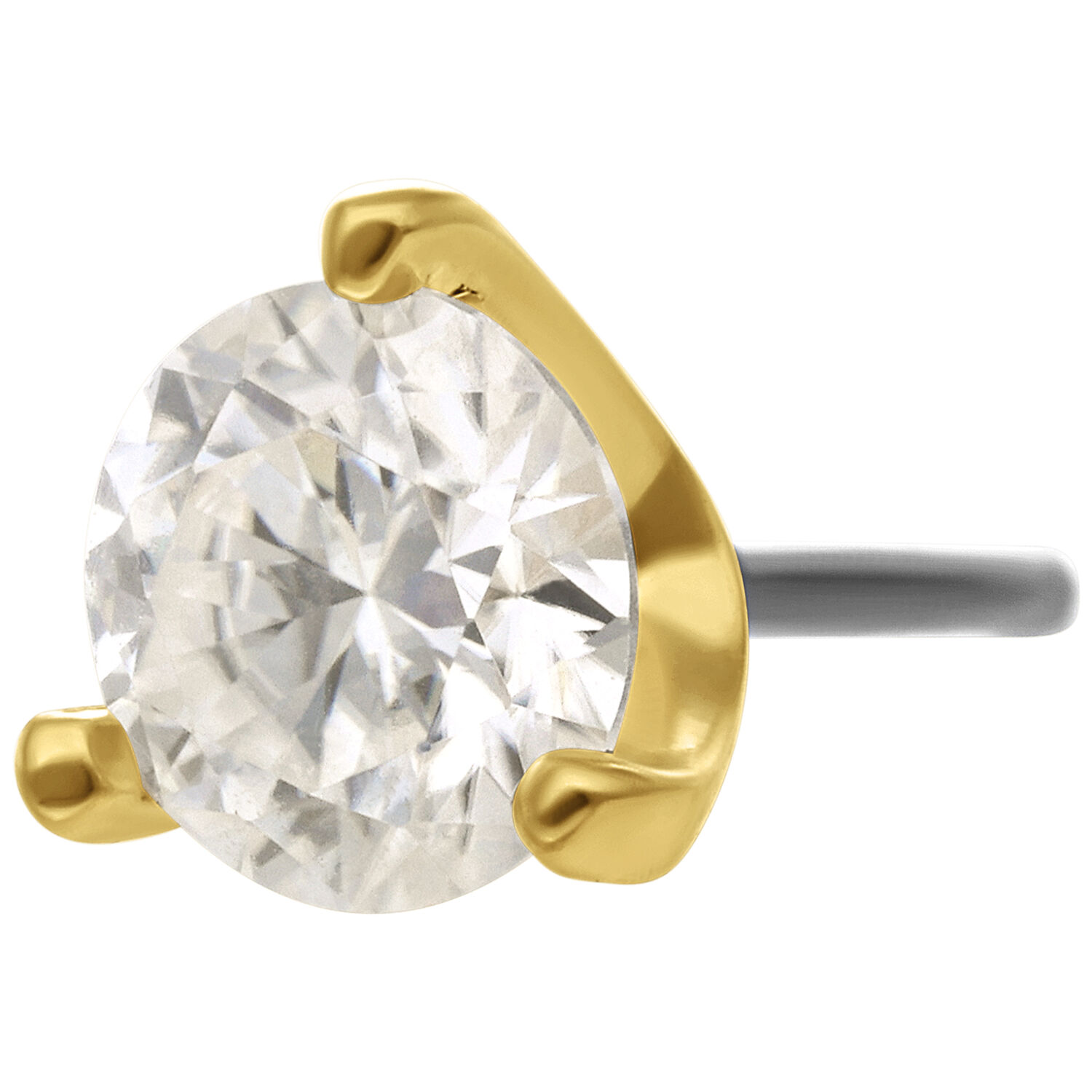 The classic 14K Gold Push-Fit Round Moissanite Attachment showcases a timeless round-cut stone that captures light with brilliant sparkle. The high-quality moissanite adds a bright, refined shine, giving any piercing an elegant and clean look.