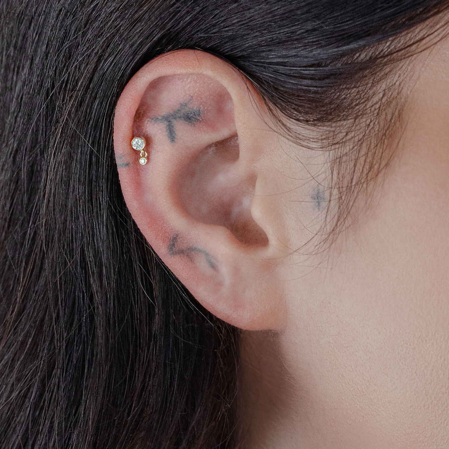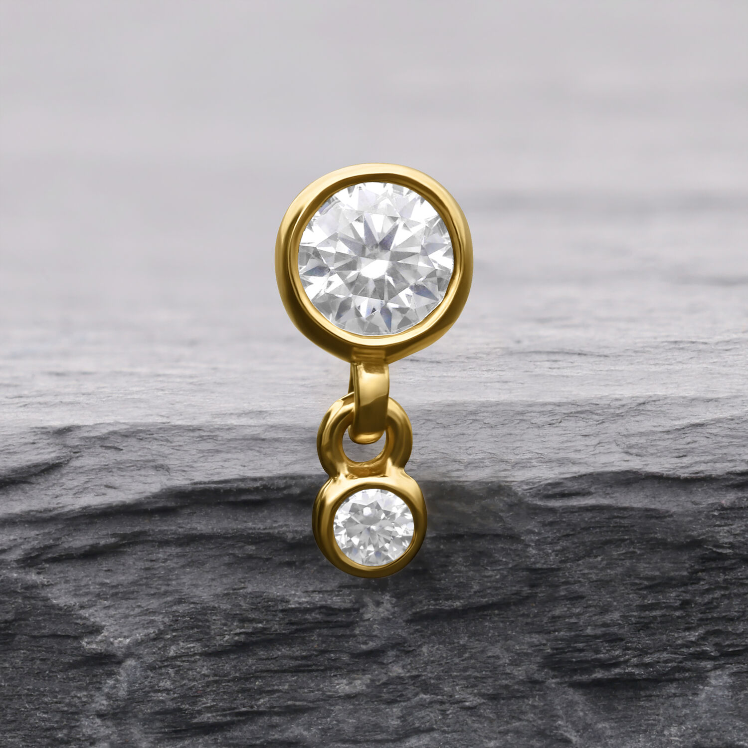 Luxurious 14K Yellow Gold Piercing – Perfect Fit Double Crystal Attachment