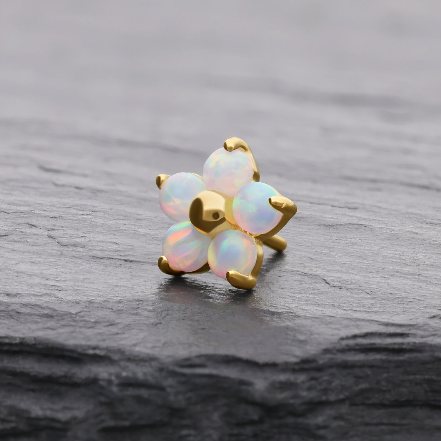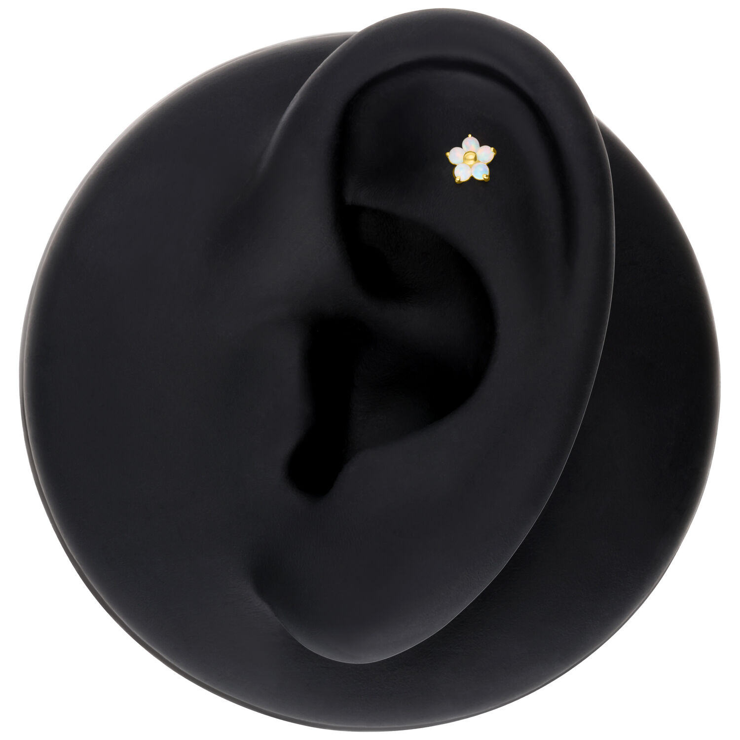 Luxurious 14K Yellow Gold Piercing – Perfect Fit Flower Synthetic Opal Attachment