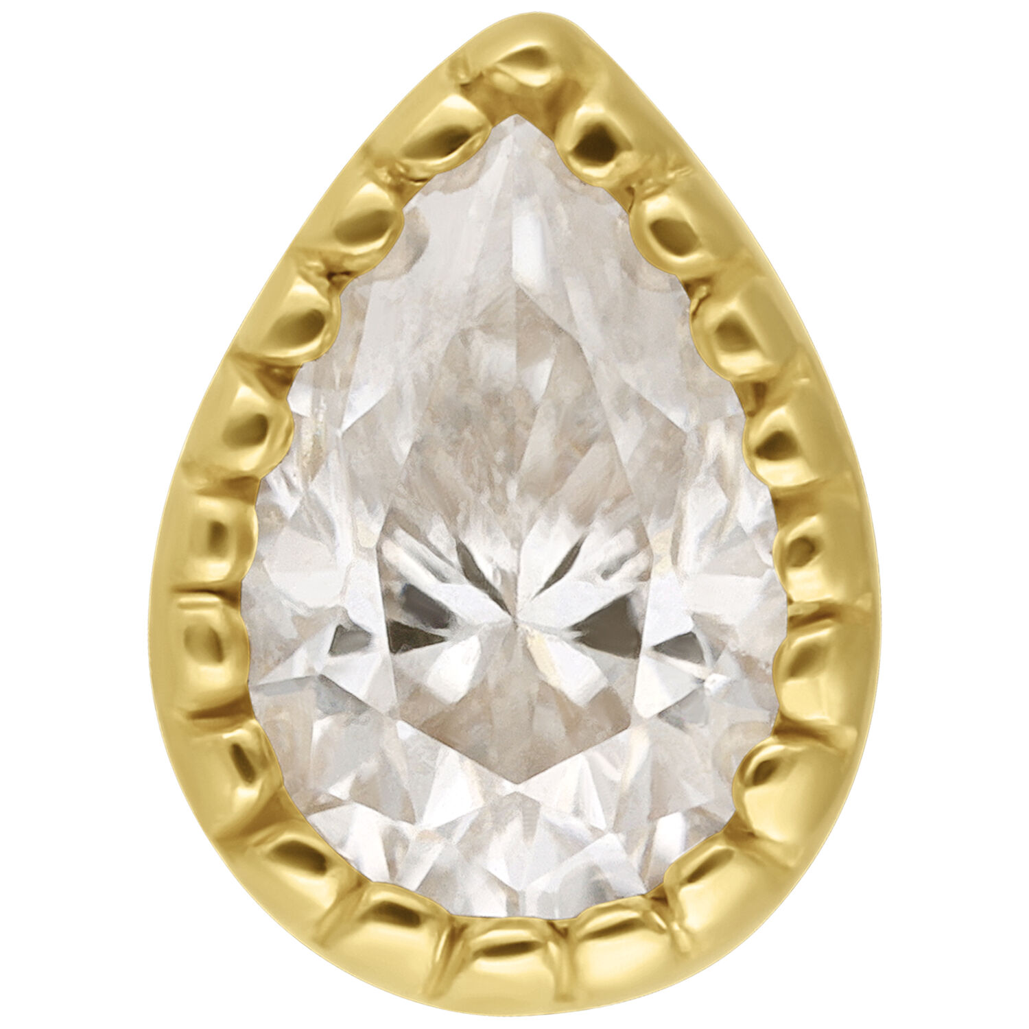 The 14K Perfect Fit Moissanite Drop Attachment combines luxurious craftsmanship with timeless elegance. Made from polished 14-karat (585) yellow gold, this attachment features a refined drop design adorned with a sparkling moissanite stone that radiates exceptional brilliance.