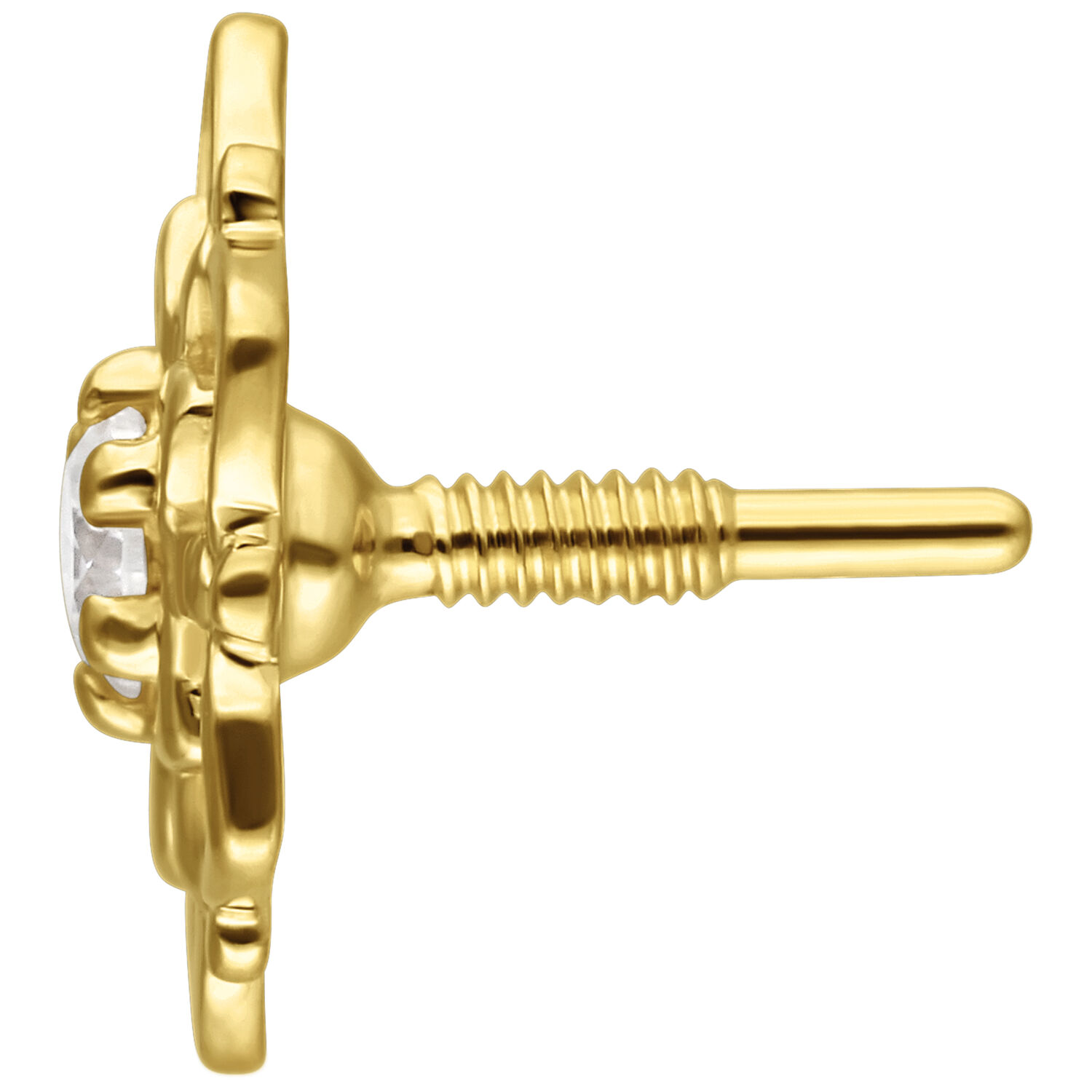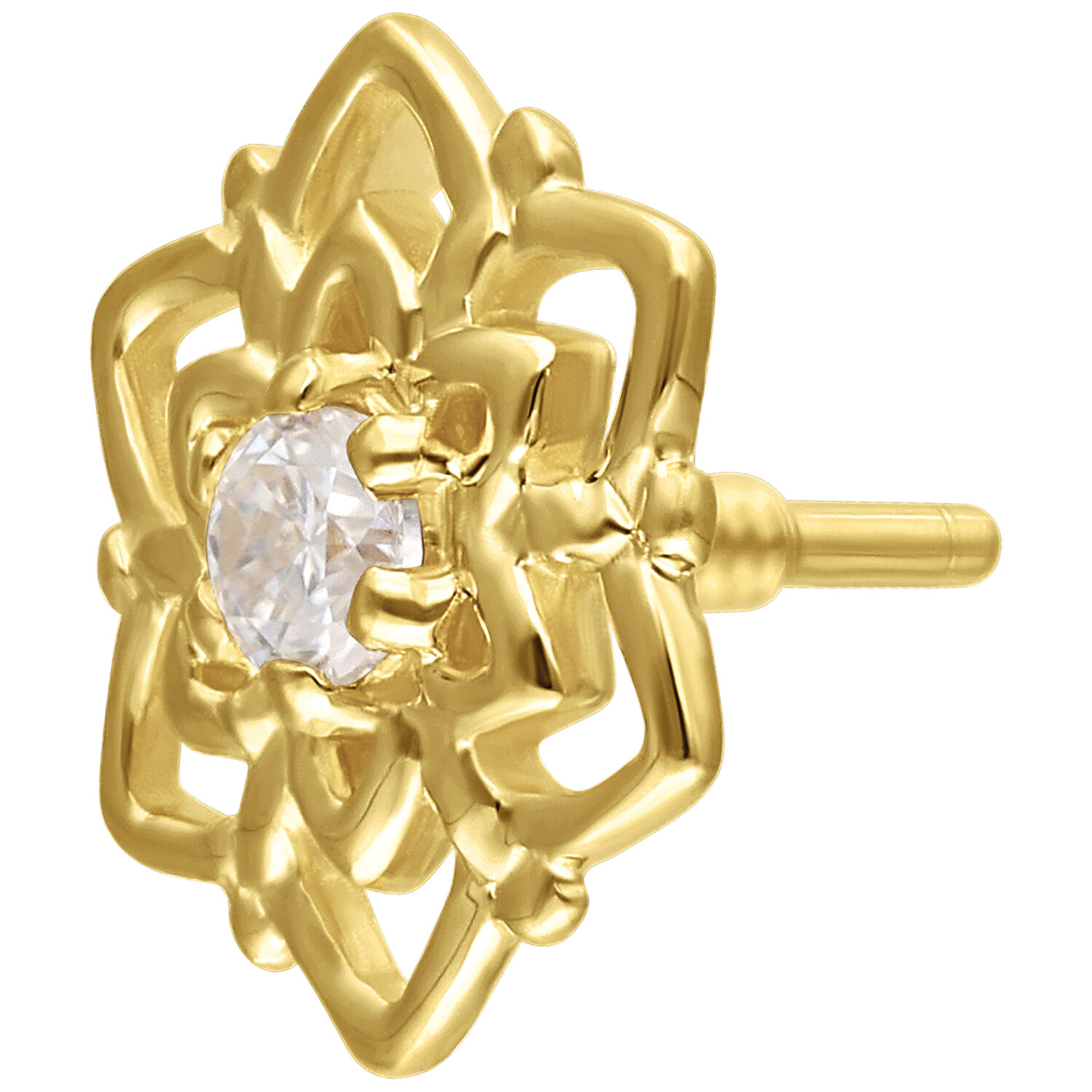 The 14K Perfect Fit Moissanite Flower Attachment combines delicate beauty with luxurious brilliance. Crafted from high-quality, polished 14-karat (585) yellow gold, this attachment features an intricate floral design that captures both grace and sophistication.