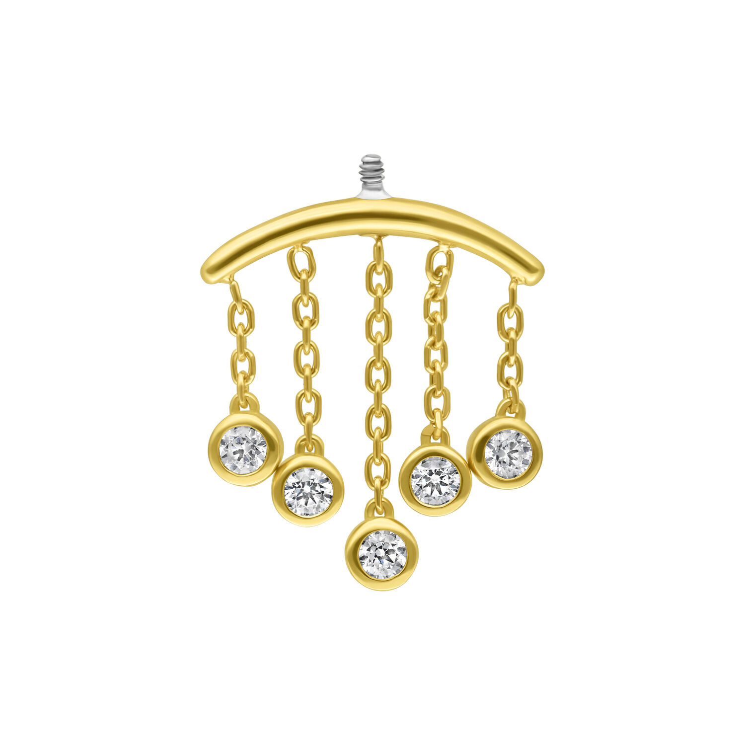 Our Internally Crystal Drops Hidden Helix Attachment is crafted from exquisite 18-karat (750) yellow gold, while the internal threading is made from high-quality 316L surgical steel.