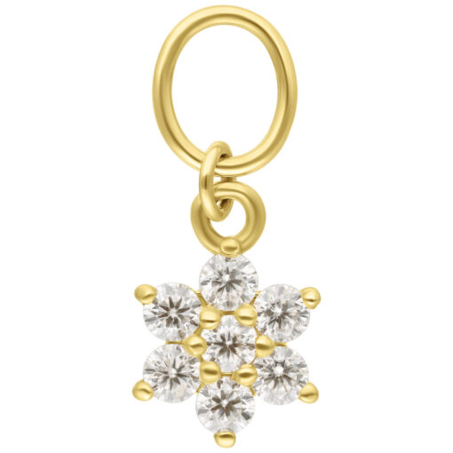 The 18K Moissanite Flower Pendant captures the essence of elegance and femininity. Crafted from polished 18 karat (750) yellow gold, this refined piercing pendant features a delicate flower design, symbolizing harmony, growth, and strength.