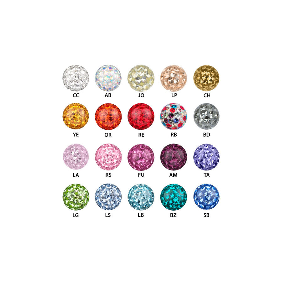 The Sealed Multi Jewelled Clip-In Ball is adorned with countless high-quality crystals and is available in sizes 3.0, 4.0, 5.0, and 6.0 mm. A protective epoxy resin layer prevents any of the stones from coming loose!