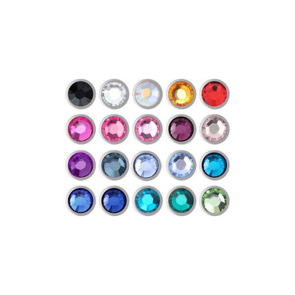 Crystal colour: Amethyst, Aurora Boreale, Black, Bleu zircon, Capriblue, Dark Blue, Emerald Green, Fuchsia, Hellsaphir, Lavender, Light Blue, Light Green, Montana, Pink, Purple, Red, Rosa, Sapphire Blue, White, Yellow