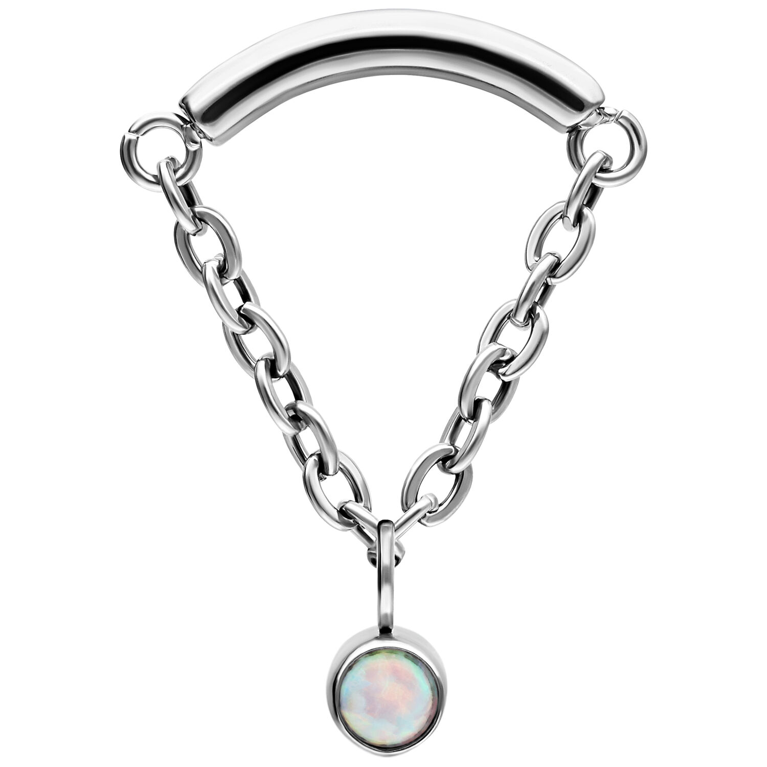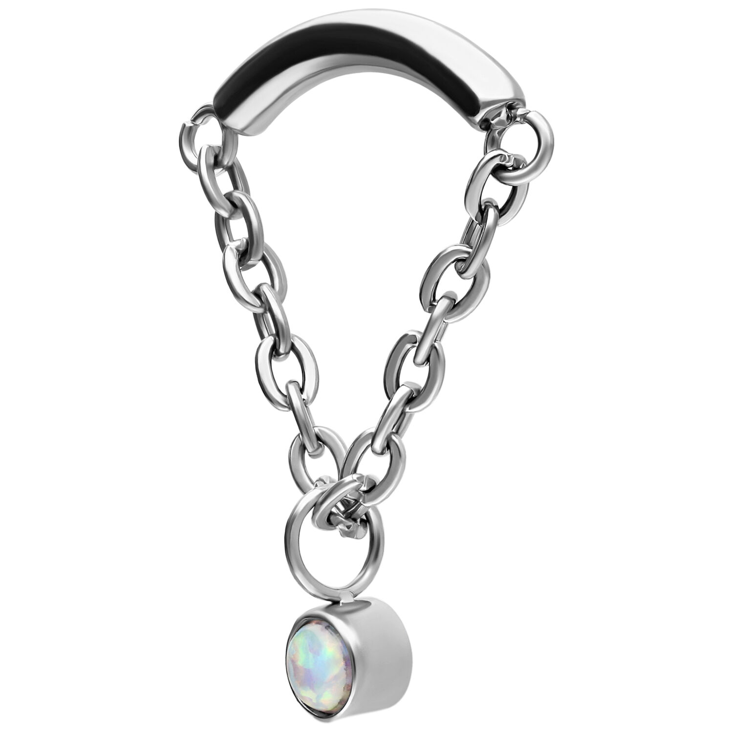 Bei diesem Aufsatz trifft kühles, hochwertiges Titan auf innovatives Design. Dieser Aufsatz ist perfekt geeignet für deinen Hidden Helix. Der gebogene Stab versteckt sich perfekt in deine Ohrfalte, sodass nur die feine Kette sichtbar ist und deinem Look einen eleganten und ganz besonderen Flair verleiht.