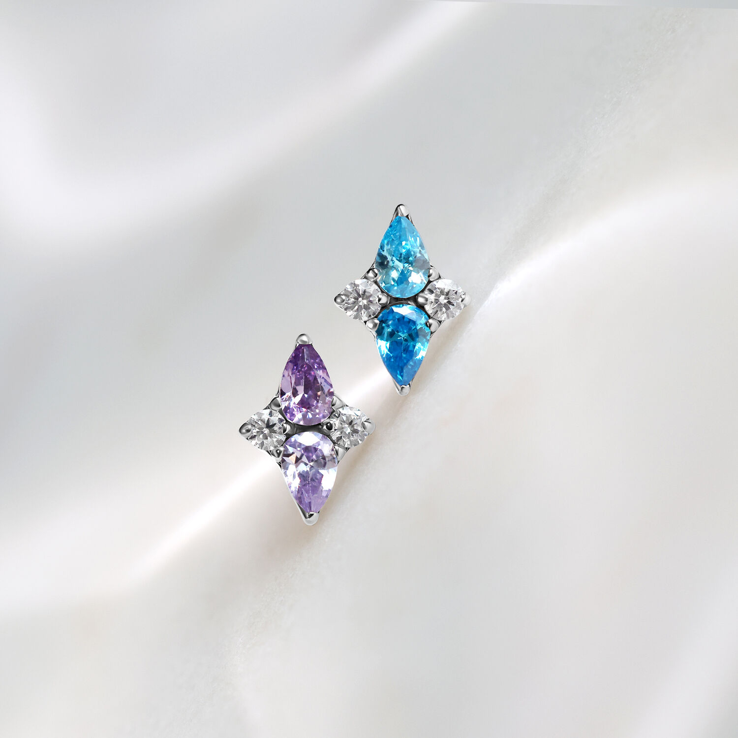 The sparkling crystals in turquoise and lavender shine like tiny treasures, capturing the light with every movement and making you glow. Paired with sleek silver or luxurious gold, this design immediately catches the eye and adds an irresistible aura to your look.