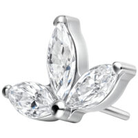 Add a special touch to your piercing with the Crystal Lotus Attachment. Three high-quality, oval crystals form the shape of a lotus, capturing the light in a truly enchanting way. The lotus symbolizes purity, enlightenment, and transformation – and this attachment brings that sense of beauty and harmony to your piercing. The fine crystals create a sparkling accent, adding that little something extra to your look. With its elegant design, our Crystal Lotus Attachment is the perfect eye-catching piece that gives your piercing a spiritual yet sophisticated aura. It’s ideal for adding a personal touch to your jewelry and giving your style more shine and meaning.