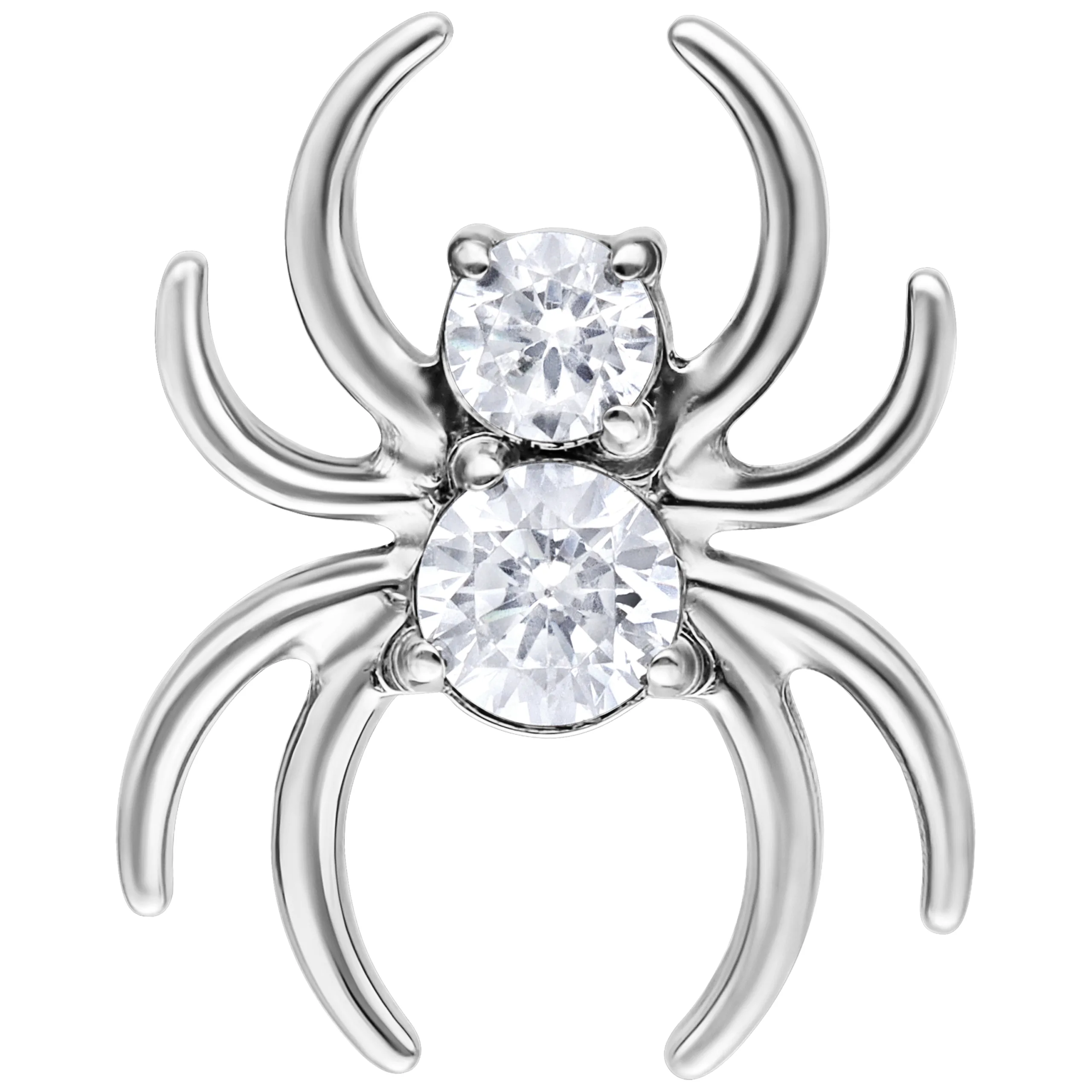Our Push Fit Crystal Spider Attachment is an incomparable piercing attachment that adds a mysterious touch to your look. In the shape of a delicate spider with two sparkling crystals, it embodies elegance and sophistication. The spider represents wisdom and protection, while the crystals express its brilliance and beauty.