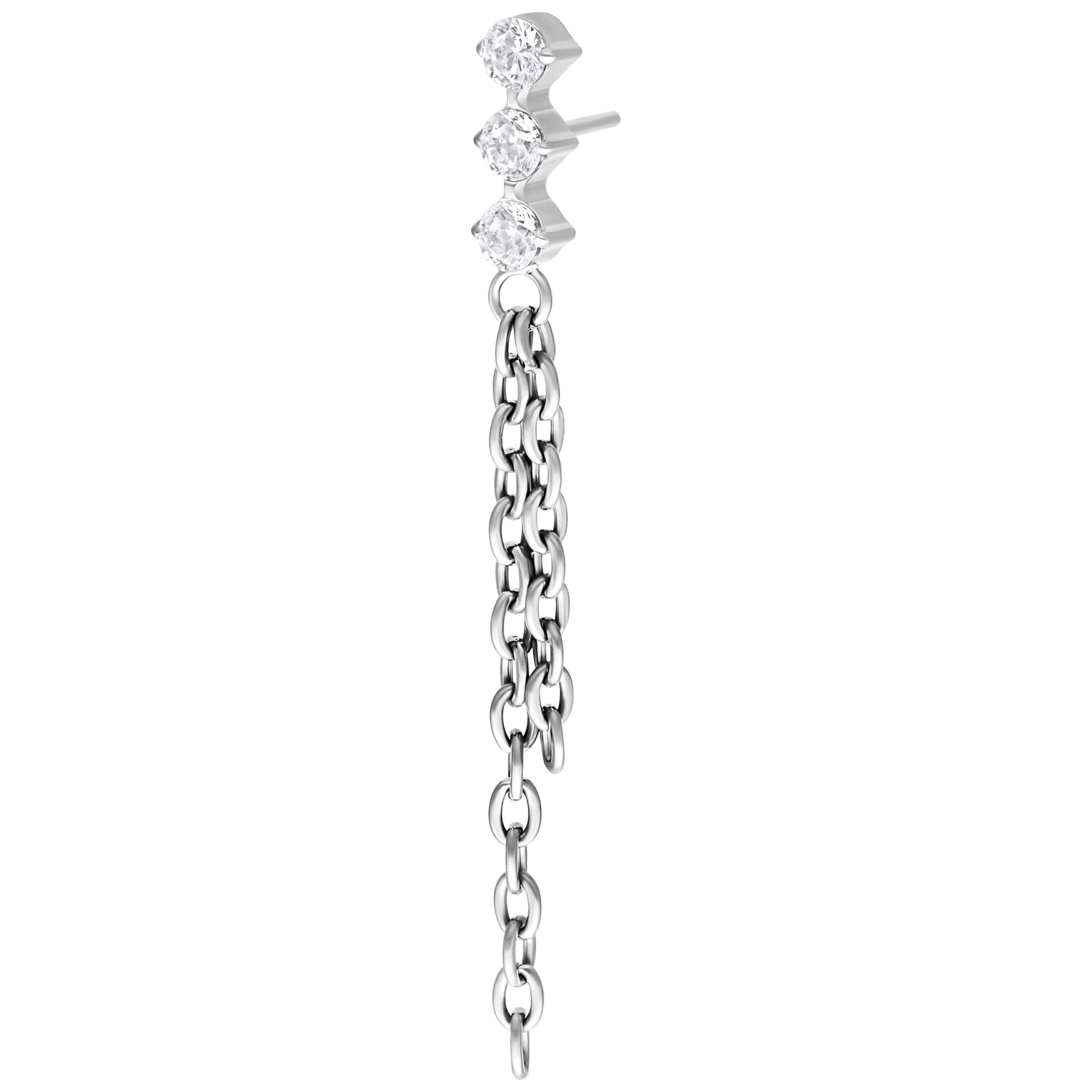 Are you looking for a touch of sparkle and attitude? Our Push Fit Attachment with sparkling crystals and fine chains is a statement piece that instantly catches the eye. The delicate chains elegantly hang from your ear, adding an edgy yet playful touch to this piercing. It’s a perfect expression of individuality and style.