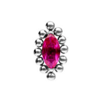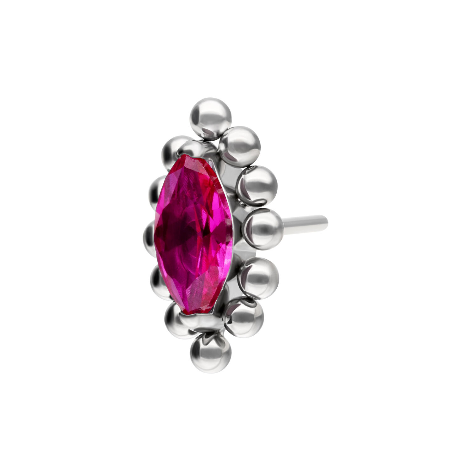 The Push Fit Maharani Ruby Halo Attachment features a bold yet elegant design. At its center is an intense pink marquise-cut crystal, whose elongated shape creates a refined look and beautifully reflects light.
