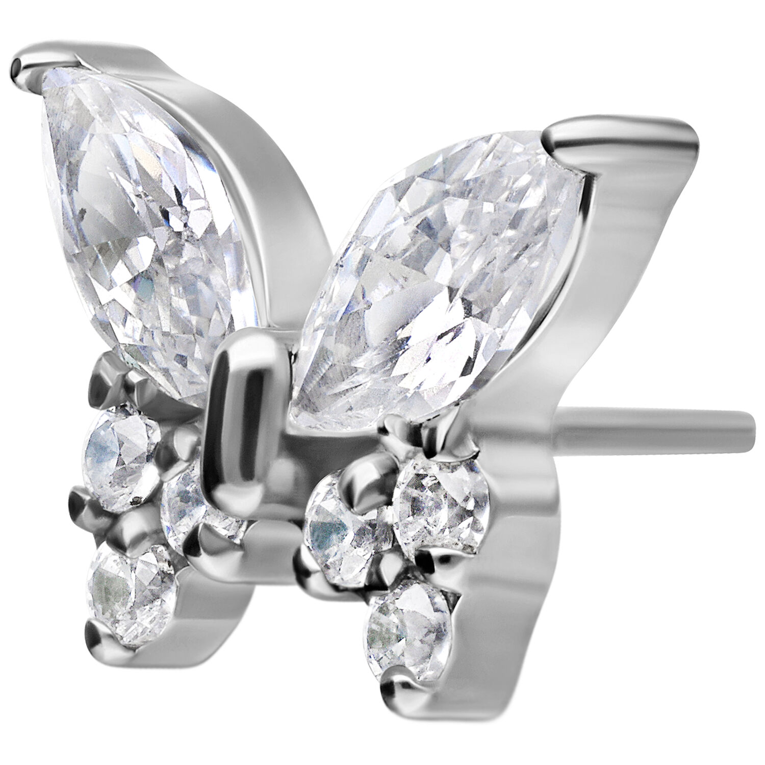 Our Push Fit Multi Jewelled Butterfly Attachment gives your ear a sparkling finish in a sweet, summery style. We love this look – it’s a refreshing change and can be perfectly combined with other pieces! The upper wings of the butterfly are made from two large crystals, while the lower wings are each adorned with three smaller crystals. Together, they harmoniously form the butterfly’s body – a unique eye-catcher that stylishly highlights your individuality. With this Push Fit attachment, you’ll set a very special accent.
