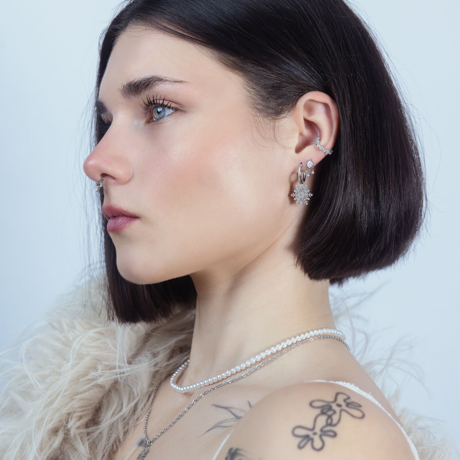 With its secure push-fit mechanism, the attachment is easy to insert and stays firmly in place. Perfect for helix and lobe piercings – a timeless winter-inspired accent that adds a touch of frosted shine to any look.