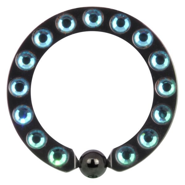 The front is equipped with 15 crystals, which are equidistant. The inner diameter of the ring is 20 mm. The banana is not included in the price!