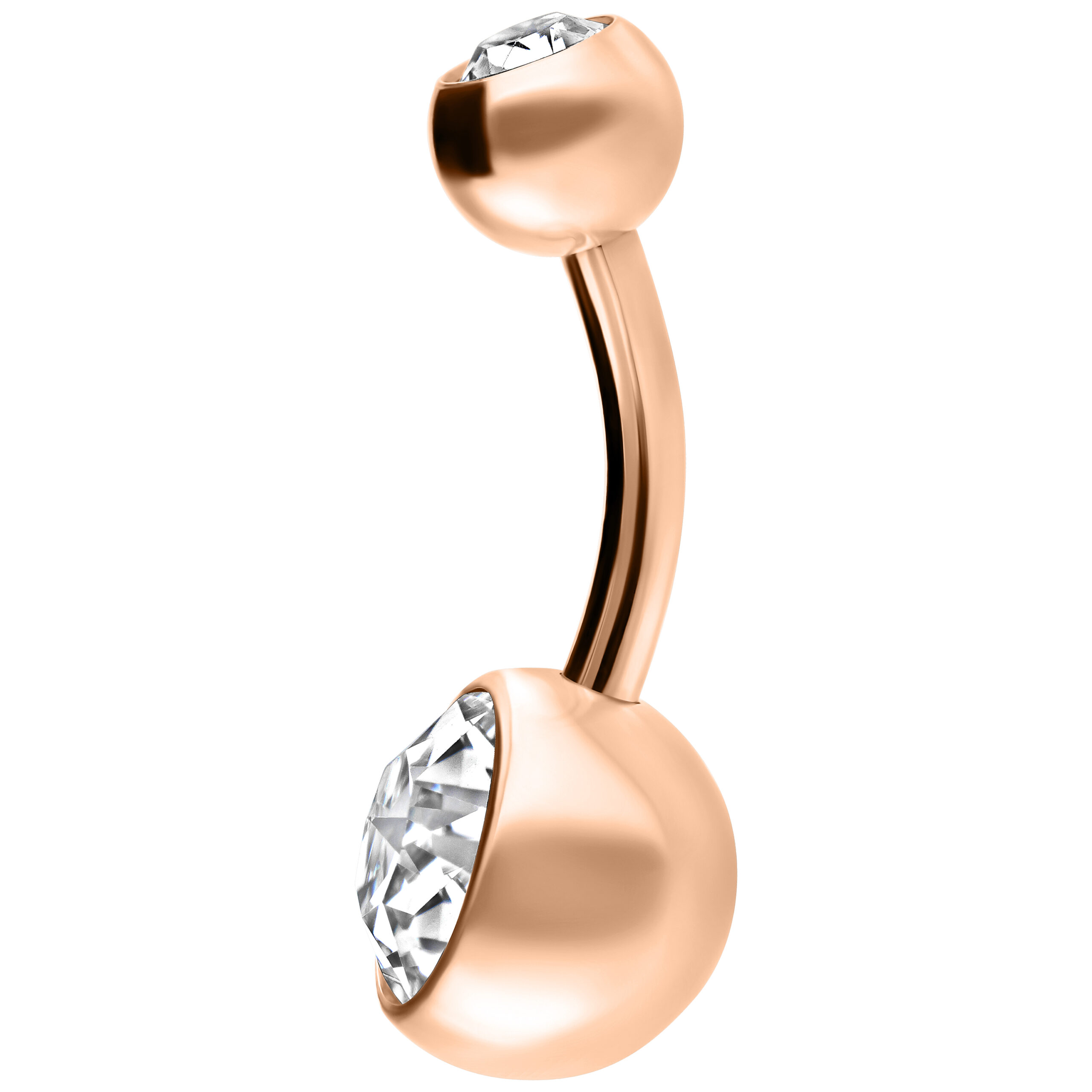 The slightly curved bar is externally threaded. The spheres can be screwed onto the external threads of our externally threaded bananabells. Incidentally, all threads in our jewellery collections are standardised so that you can combine the rings, baubles, rods and attachments in 1.6 mm with each other! You will find the replacement baubles without crystal that match the Bananabell in the Titan Highline® under the article designation TTB, the baubles with crystal under XJS/XFS!