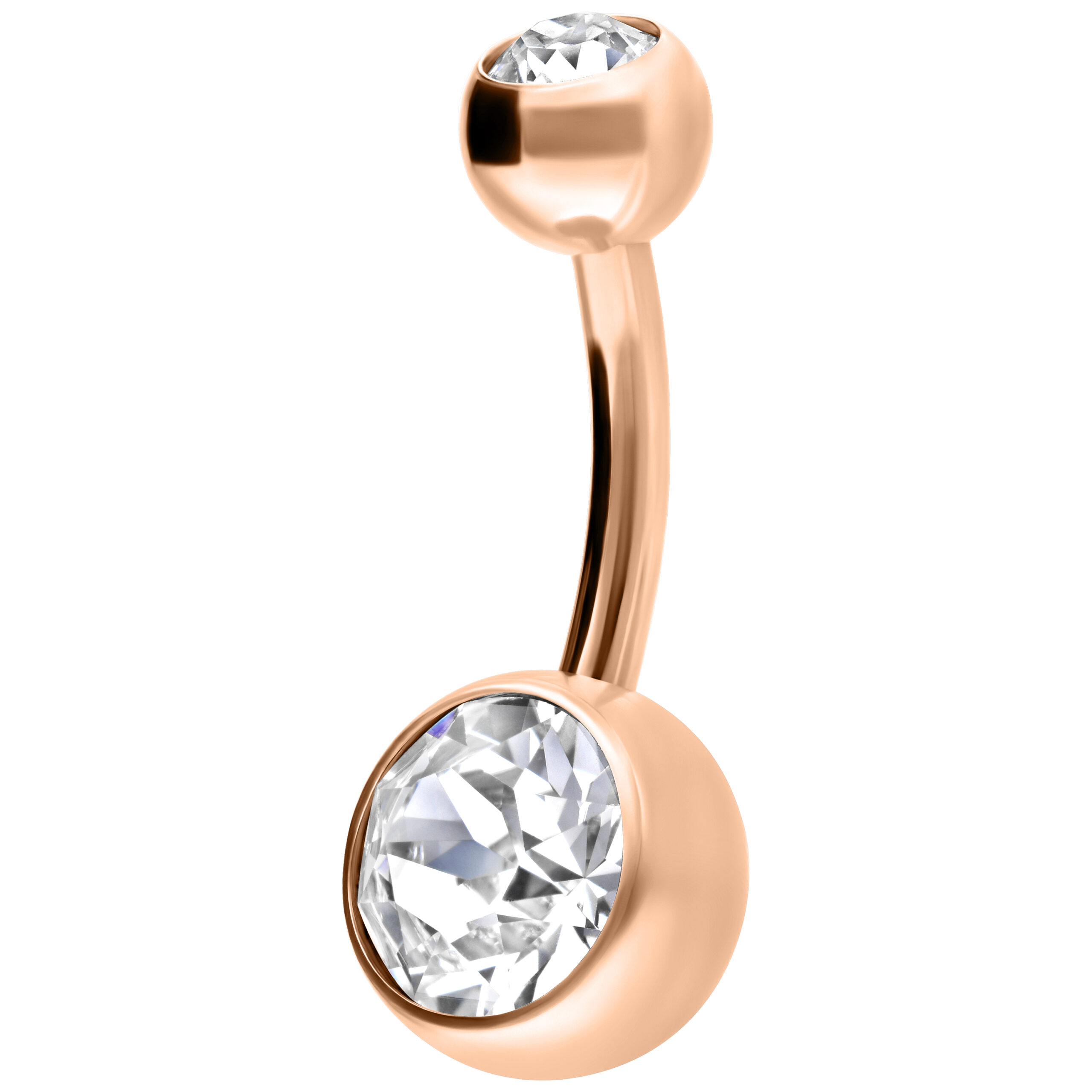 The Titanium Multicut Double Jewelled Bananabell is equipped with a larger ball in 8.0 mm and a smaller ball in 5.0 mm and is each available with facet cut crystals.