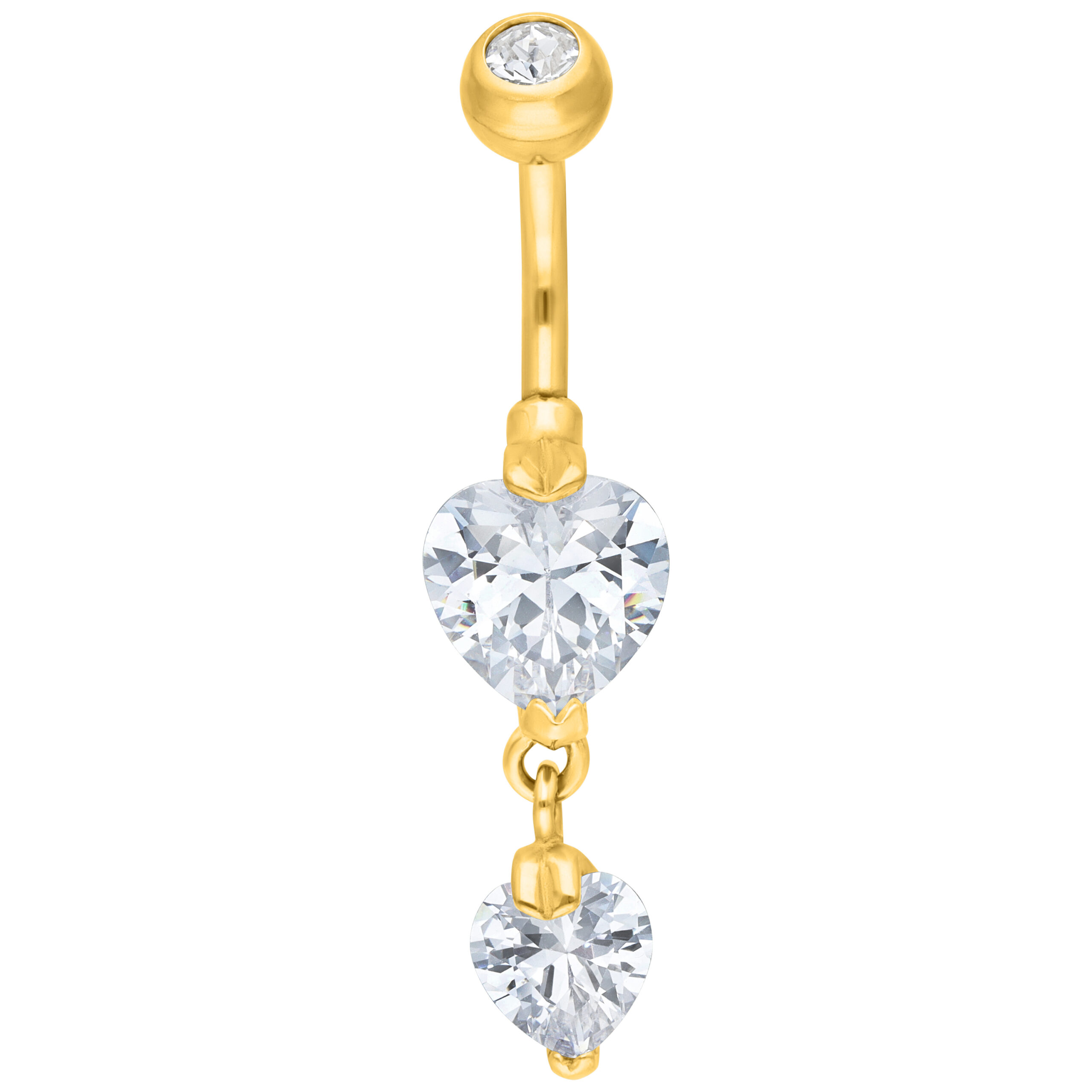 Die Multi Jewelled Two Times Heart Fashion Bananabells mit 1.6 mm Stabstärke sind in den Längen 8.0 und 10.0 mm erhältlich. Die Bananabells sind oben mit einer abschraubbaren Kugel mit Kristall bestückt, unten mit einem festen Element, in das ein herzförmiger Kristall eingefasst ist. An dem Kristall hängt ein weiterer, kleinerer Kristall. Der leicht gebogene Stab ist externally threaded. Die Kugel lässt sich auf die Außengewinde unserer externally threaded Bananabells schrauben und hat einen Durchmesser von 5.0 mm. Übrigens sind alle Gewinde in unseren Schmuckkollektionen genormt, so dass Du die Ringe, Kugeln, Stäbe und Aufsätze miteinander kombinieren kannst!