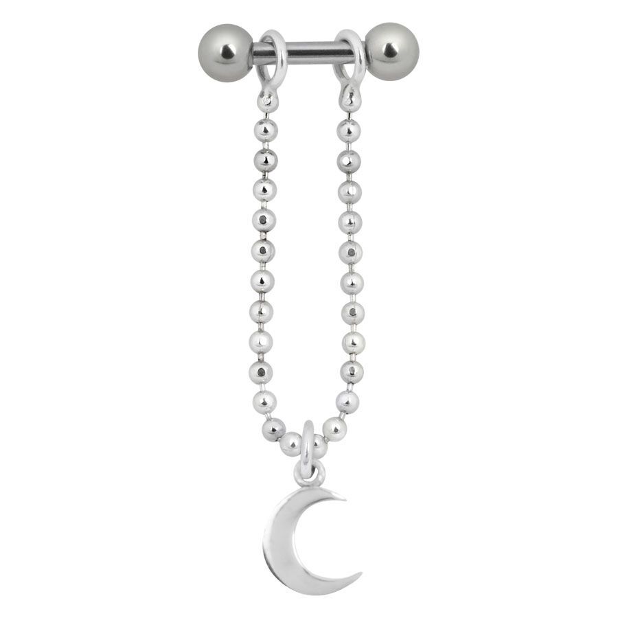 This pendant for the ear is a cool alternative for pierced ears to the ear cuffs/ear clips. Suitable is the mini barbell with chain and pendant for your helix piercing. It looks great with any outfit!