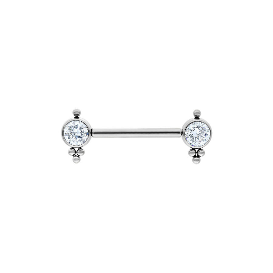 Das Piercing ist Teil unserer Titan Basicline Kollektion und besteht somit aus hochwertigem, silber- und goldfarbenem Titan. Einen besonderen Eye-Catcher geben die zwei runden, gefassten Kristalle, die bei Lichteinfall wunderschön schimmern.