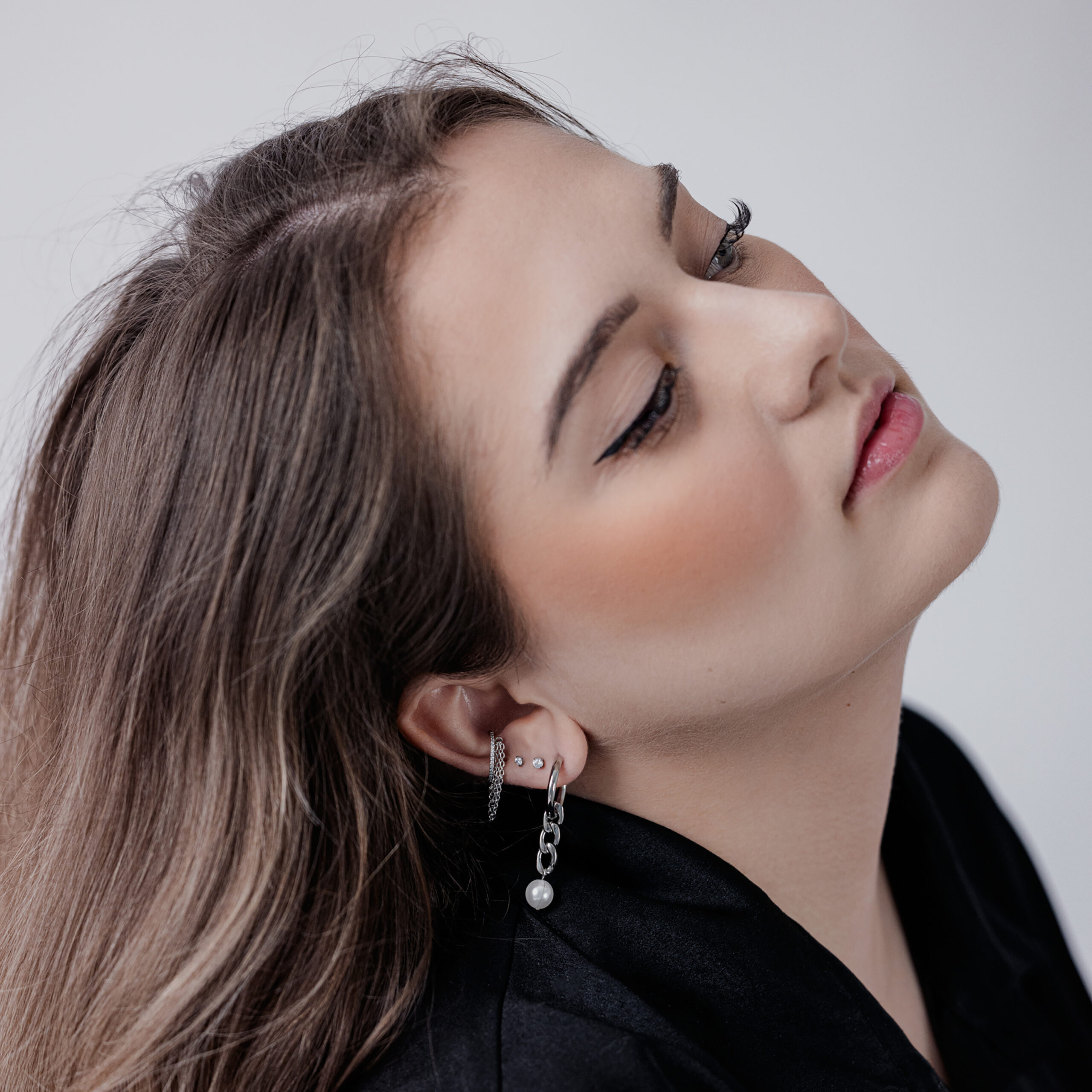 The BYCG attachment fits perfectly on a Triple Piercing Hollow Labret with a thickness of 1.2 mm. Together, this duo is suitable for closely spaced piercings! The simple exchange process allows a variety of different jewellery variations to be worn. The perfect length of the attachments ensures a secure hold despite this.