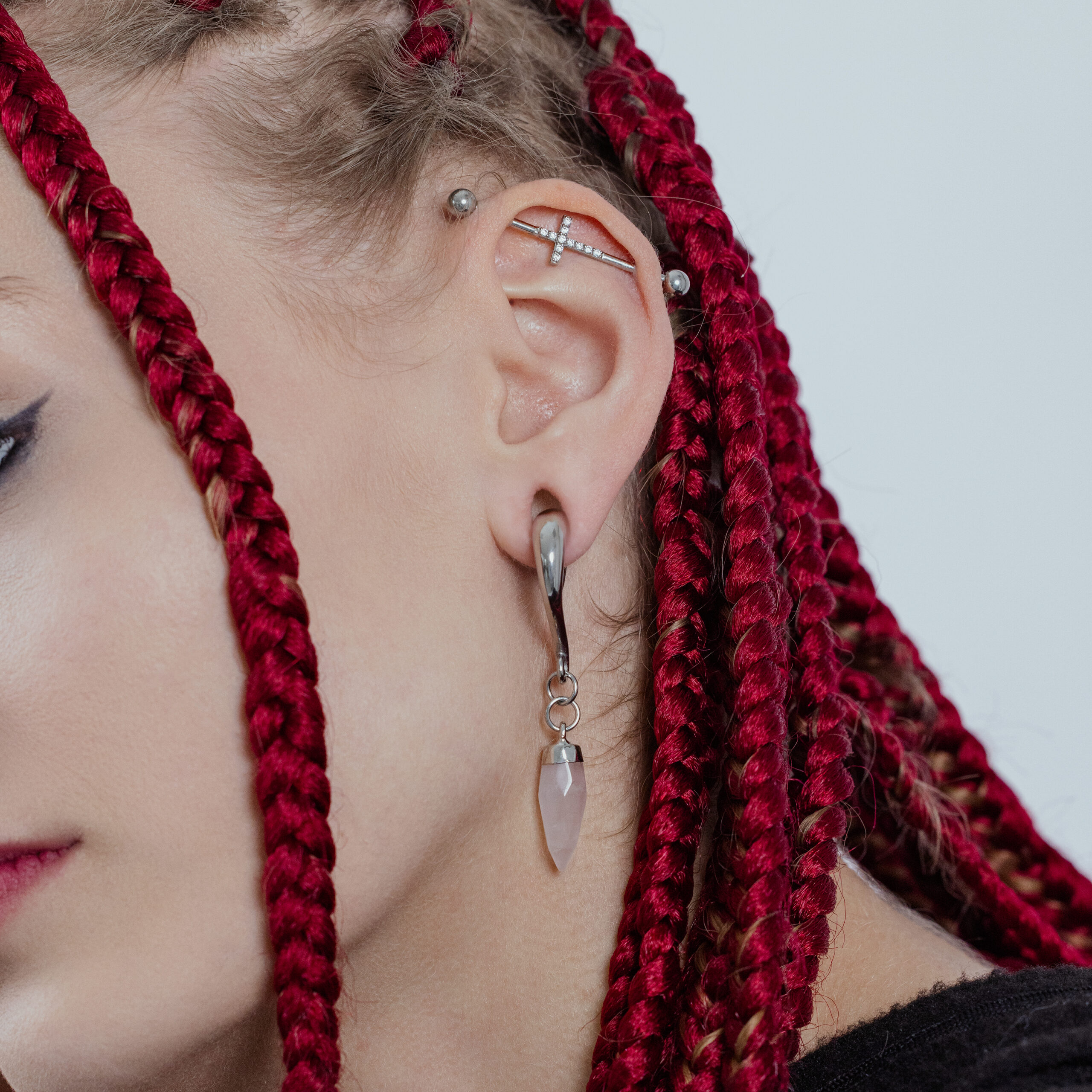 Discover our elegant natural stone ear weights featuring genuine rose quartz or agate pendants – perfect for those who love extraordinary body jewelry.