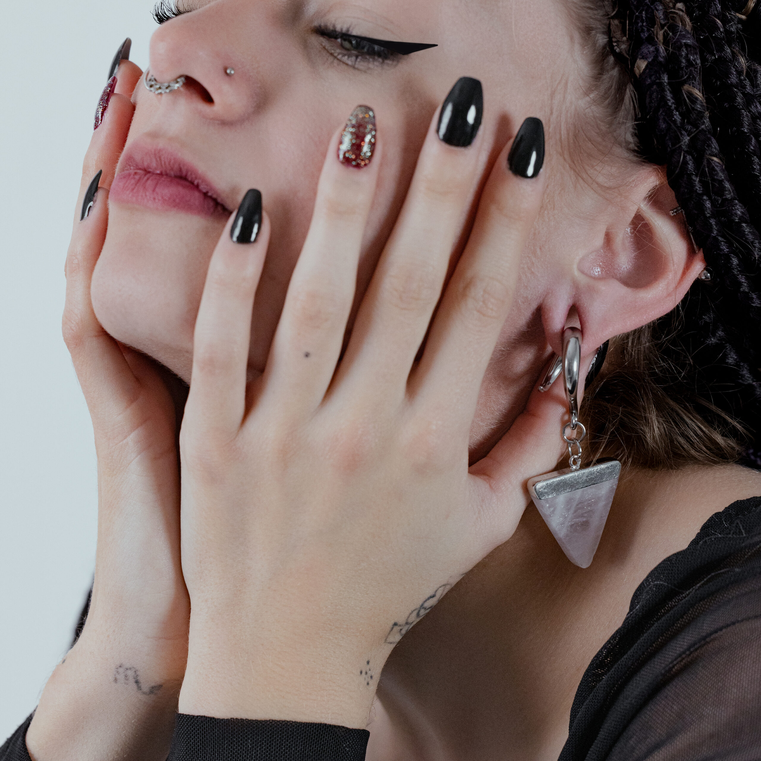 Unlike our tunnels, you get these chic hangers in pairs. The hooks are made of high quality 316L surgical steel, the pendant is made of natural stone. To keep your Ear Weights as eye-catching as they are, you should remove them before swimming or showering.