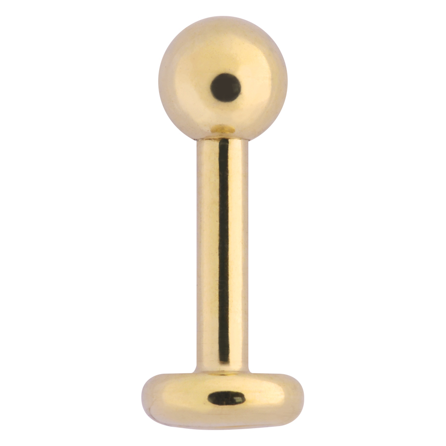 The Titan Highline® microlabret with a rod thickness of 1.2 mm is available in lengths from 5.0 to 12.0 mm. The matching ball has a diameter of 3.0 mm. The lower part of the jewelry is flattened. The upper end is closed with a threaded ball. The thread of the pin has an external thread, so the ball can be easily screwed onto the external thread. By the way, all threads in our jewelry collections are standardized, so you can combine the rings, balls, rods and attachments with each other!