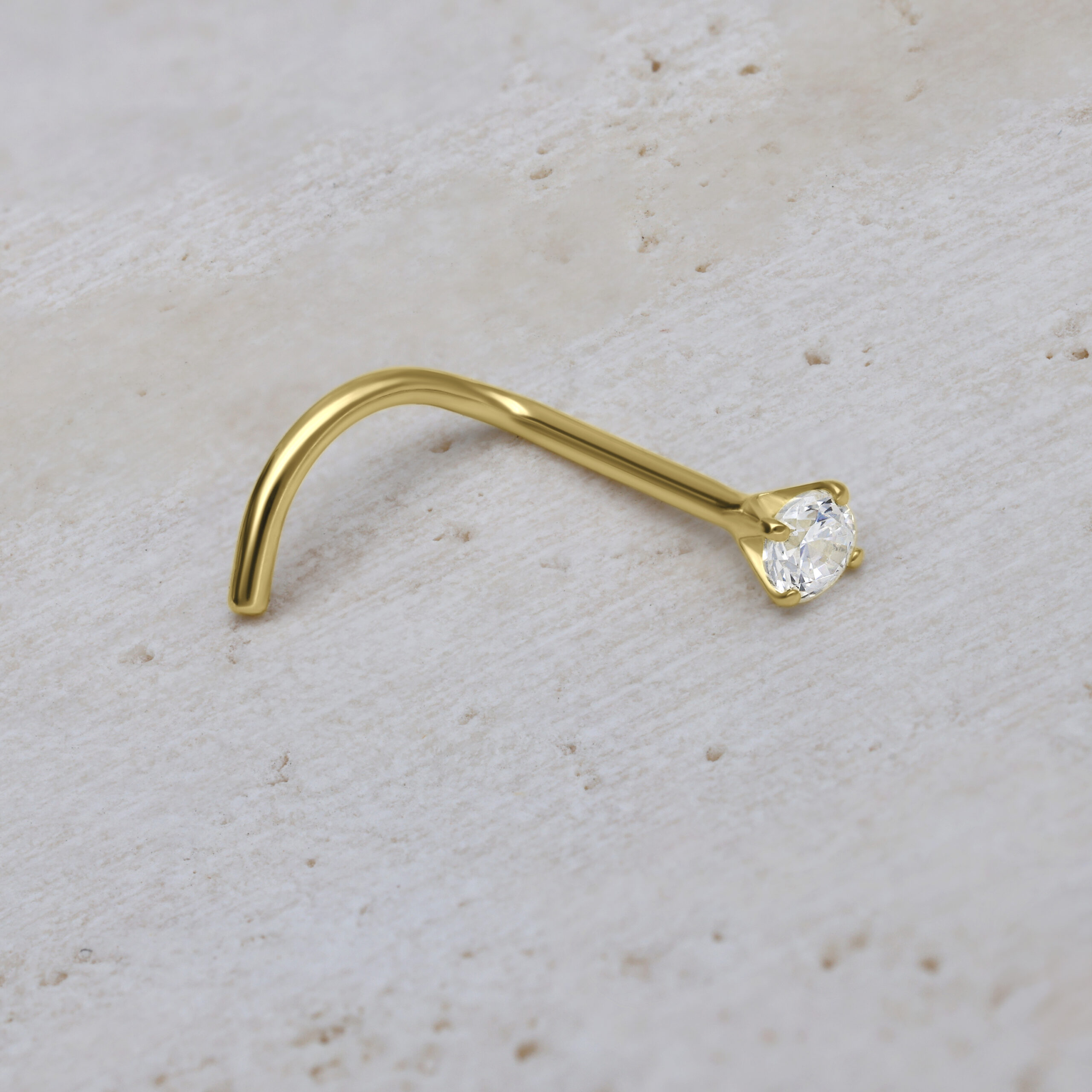 This exclusive 18-carat nose stud is crafted from the finest yellow gold. A beautiful, subtle stud for your nose that doesn’t appear too large, yet adds that certain something. Thanks to its curved tail, it stays firmly in place, but can also be easily removed without any trouble.