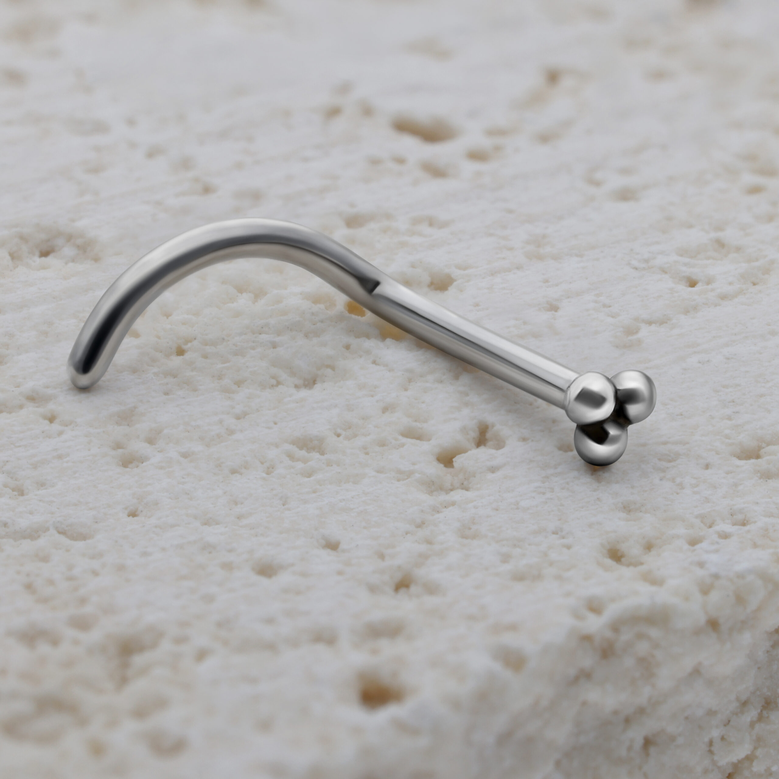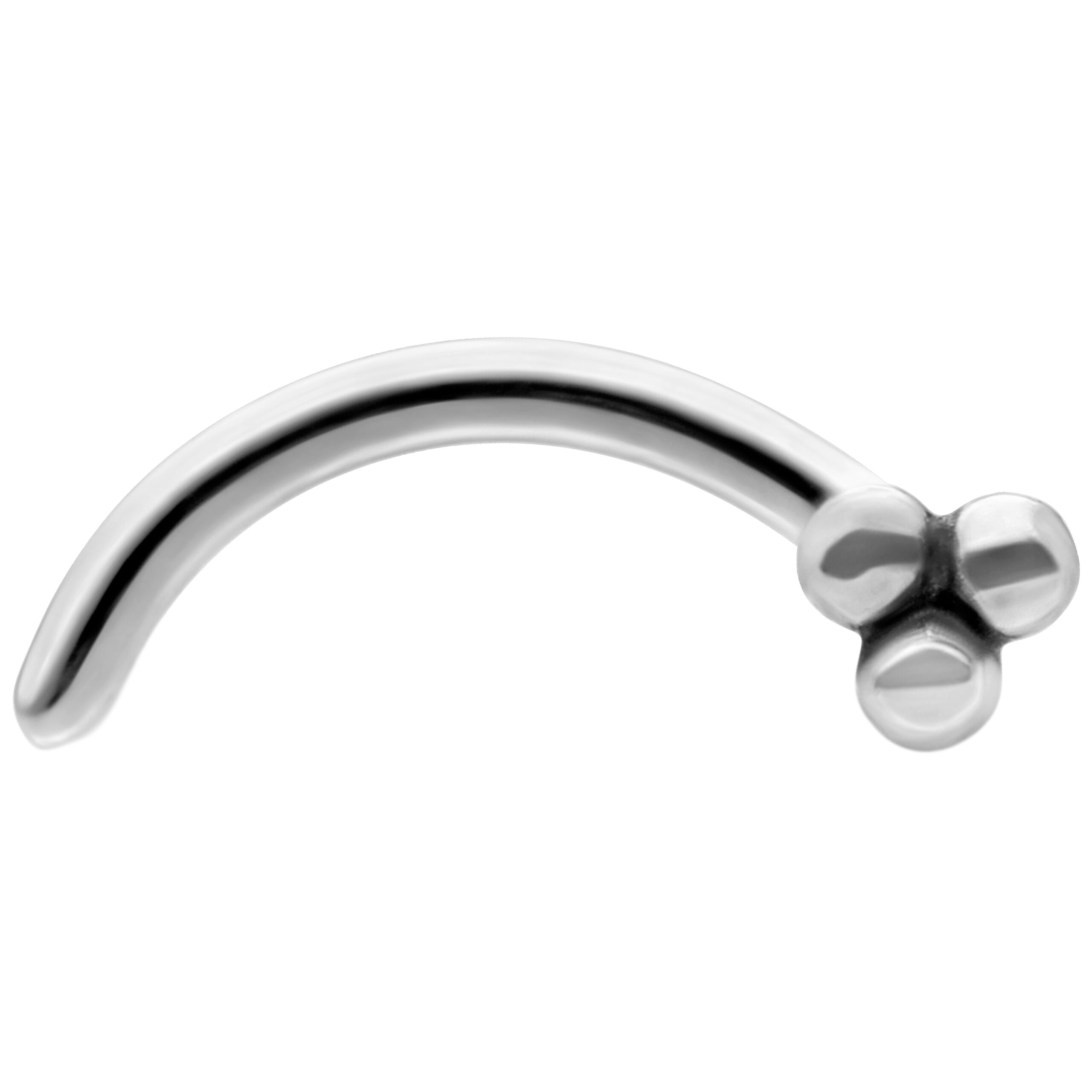 The Tribus nose stud is made of stainless steel. The material is completely skin-friendly. The curved bar has a thickness of 0.8 mm and a length of 7.5 mm.