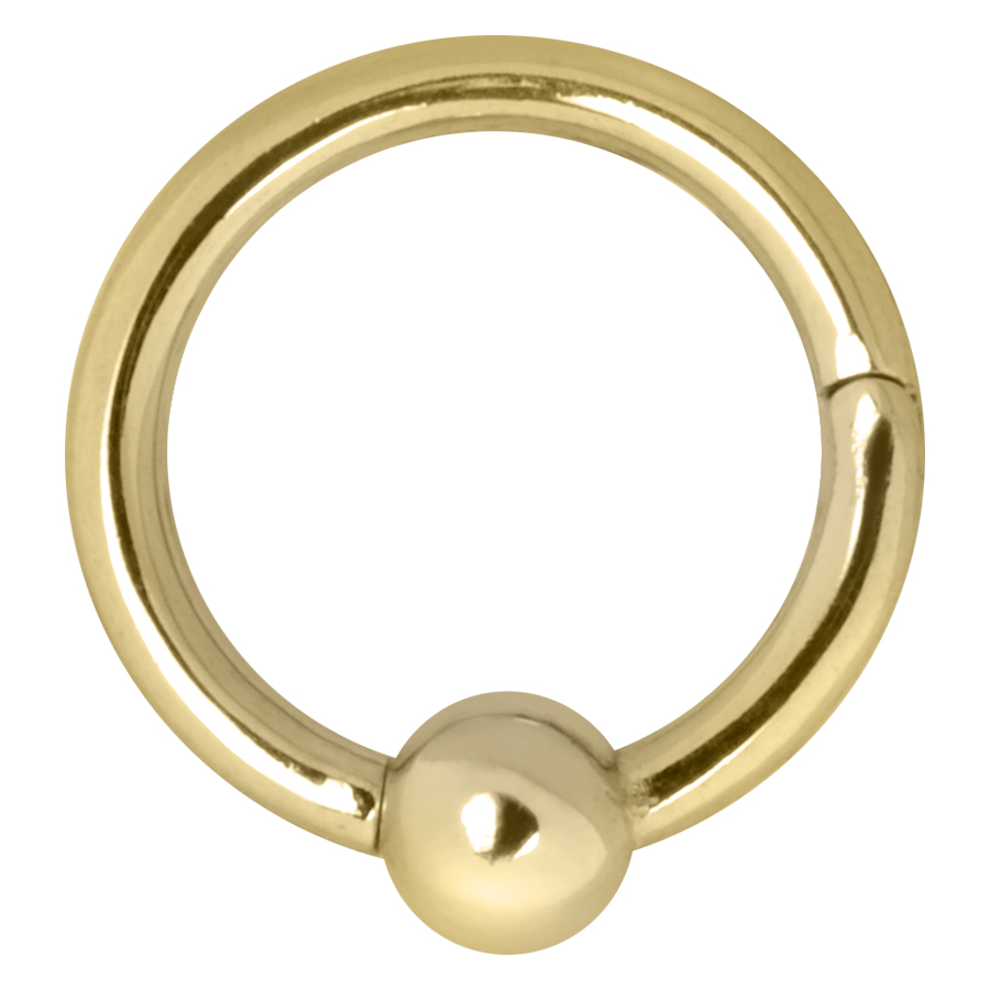 Then our cool Ball Closure Ring Clicker made of gold-coloured steel is exactly the right thing for you! With this innovative click mechanism you do not need to spent hours on trying to insert your piercing jewellery. The ball serves as a closure, which is “clicked” into the indentation of the ring. Thus, you have a very simple handling, likewise it offers a high wearing comfort. An unbeatable price-performance ratio! The clip is not deforming an looks simply pretty. Due to the good quality, this article is also recommendable for allergy sufferers.