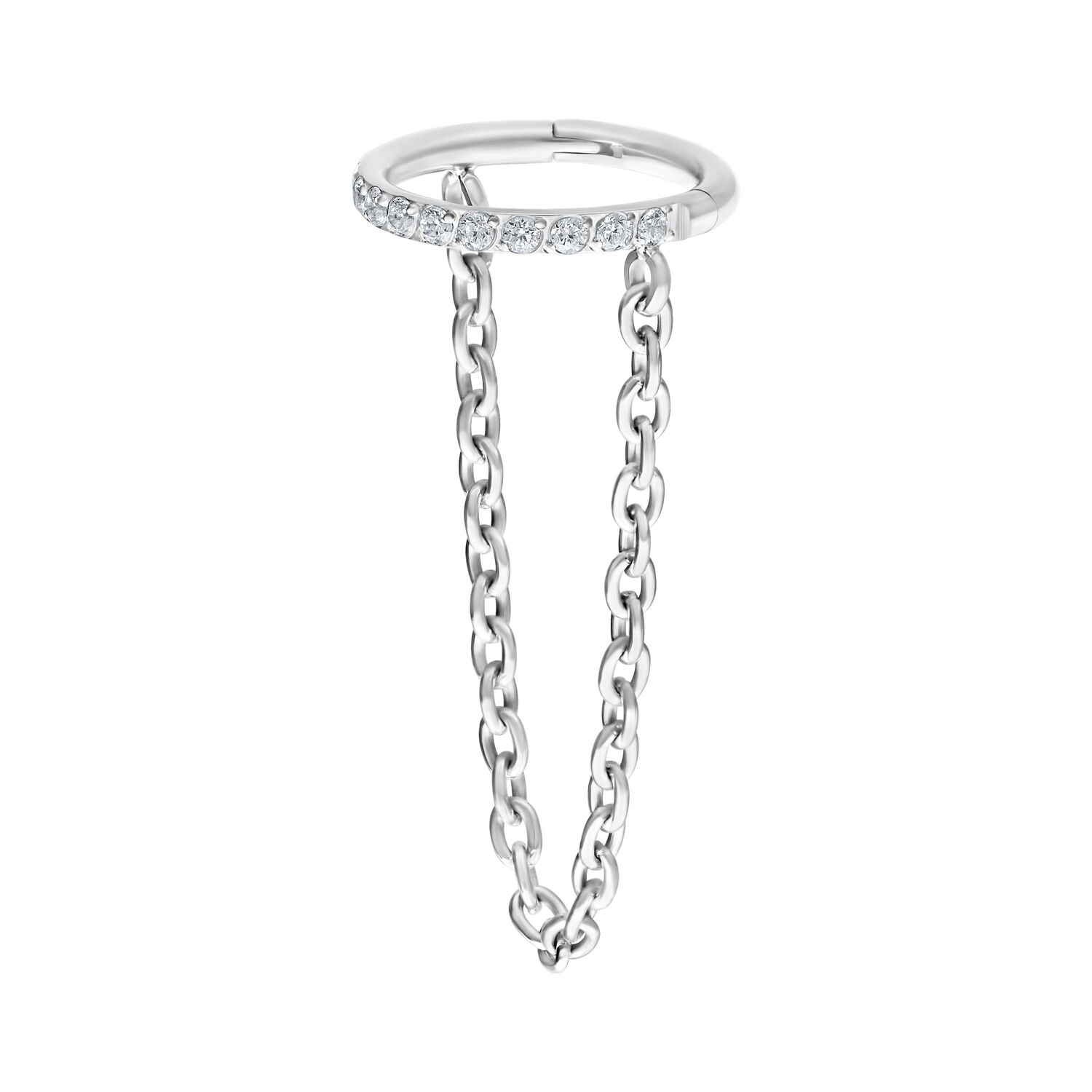 The hinged ring allows for easy insertion and optimum wearing comfort. This piercing is also made from high-quality titanium with a white gold-coloured PVD coating.