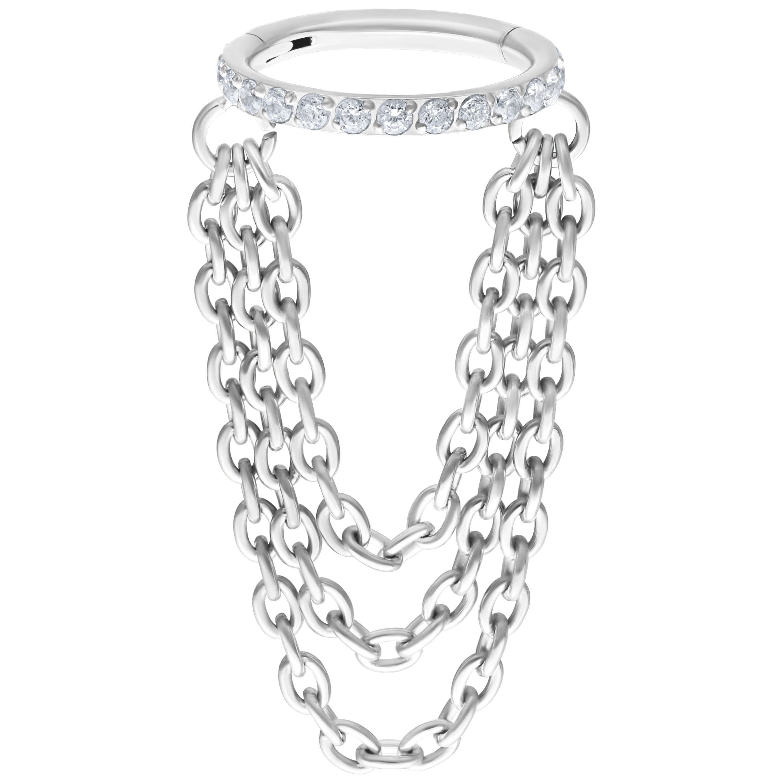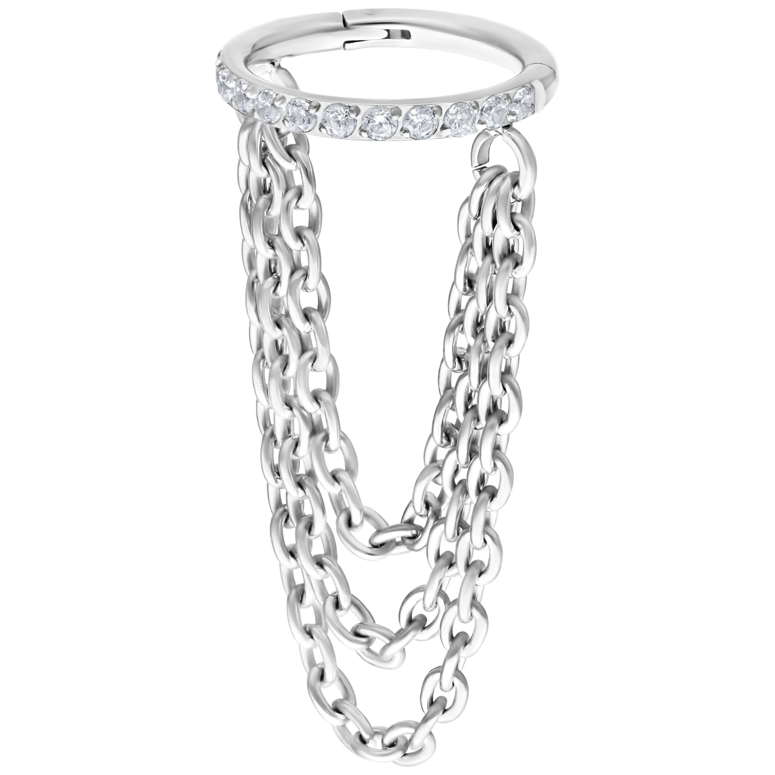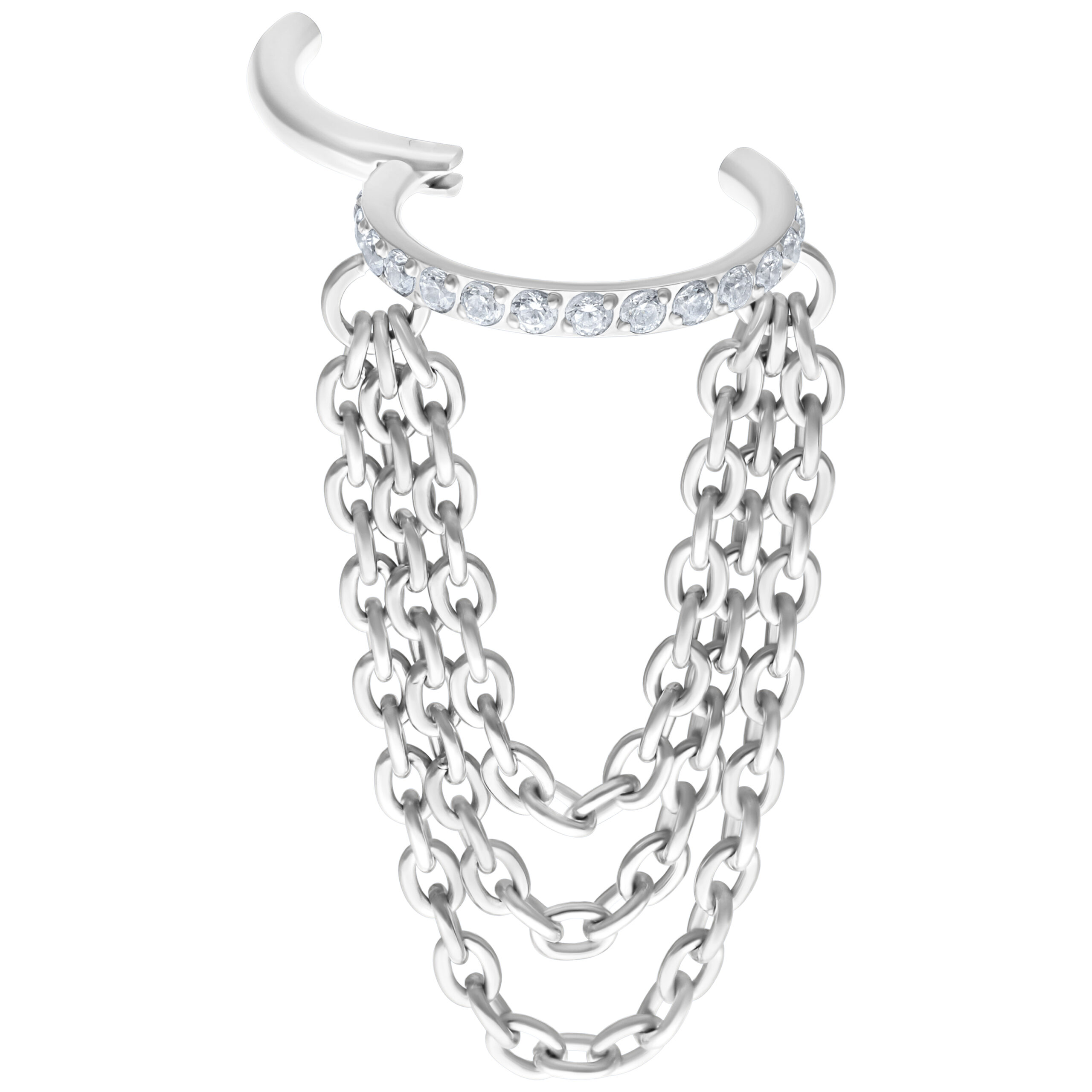 The Crystal Triple Chain Clicker is something very special. With its 3-row chain, it hangs elegantly from your ear. The crystals sparkle beautifully in the light. This combination is definitely an eye-catcher!