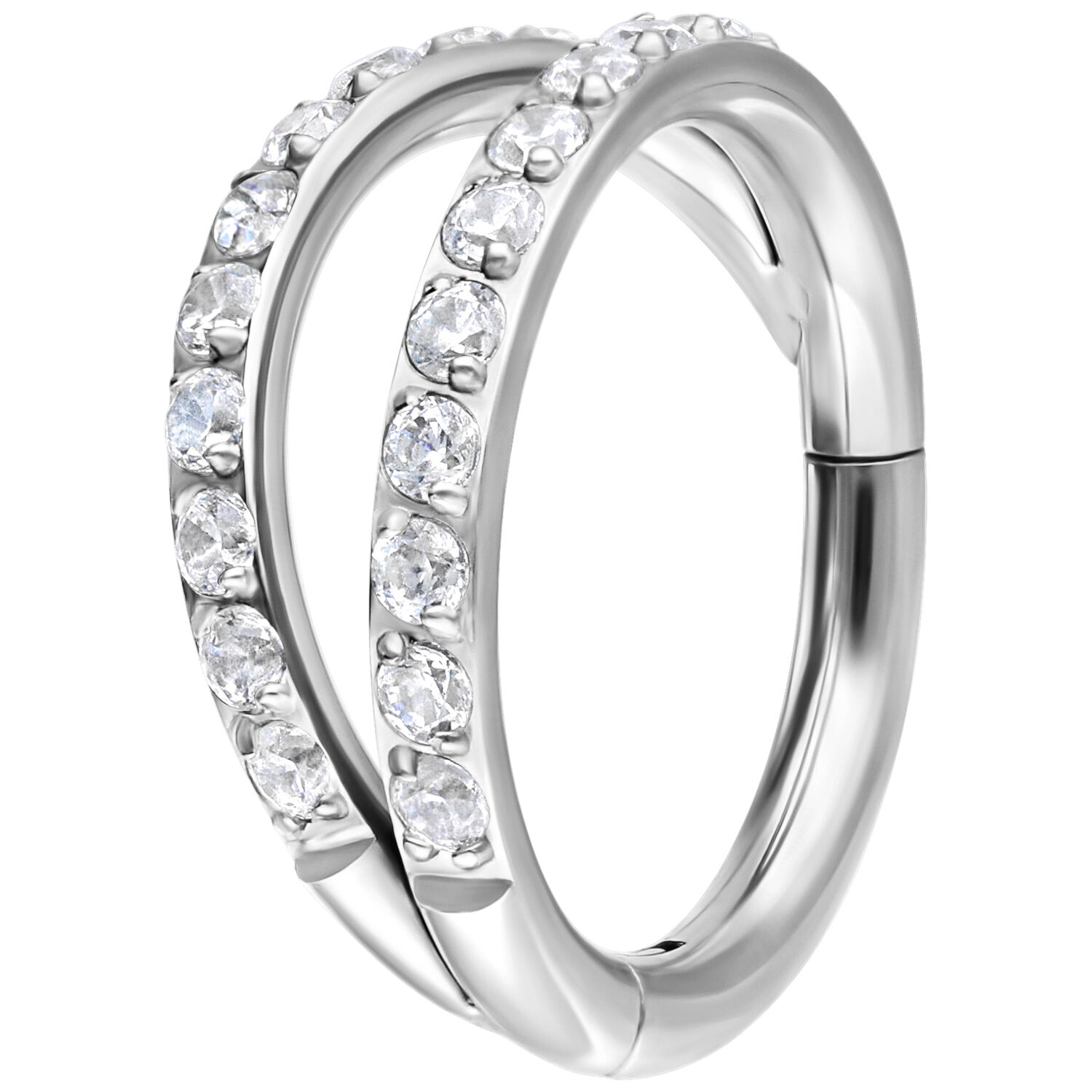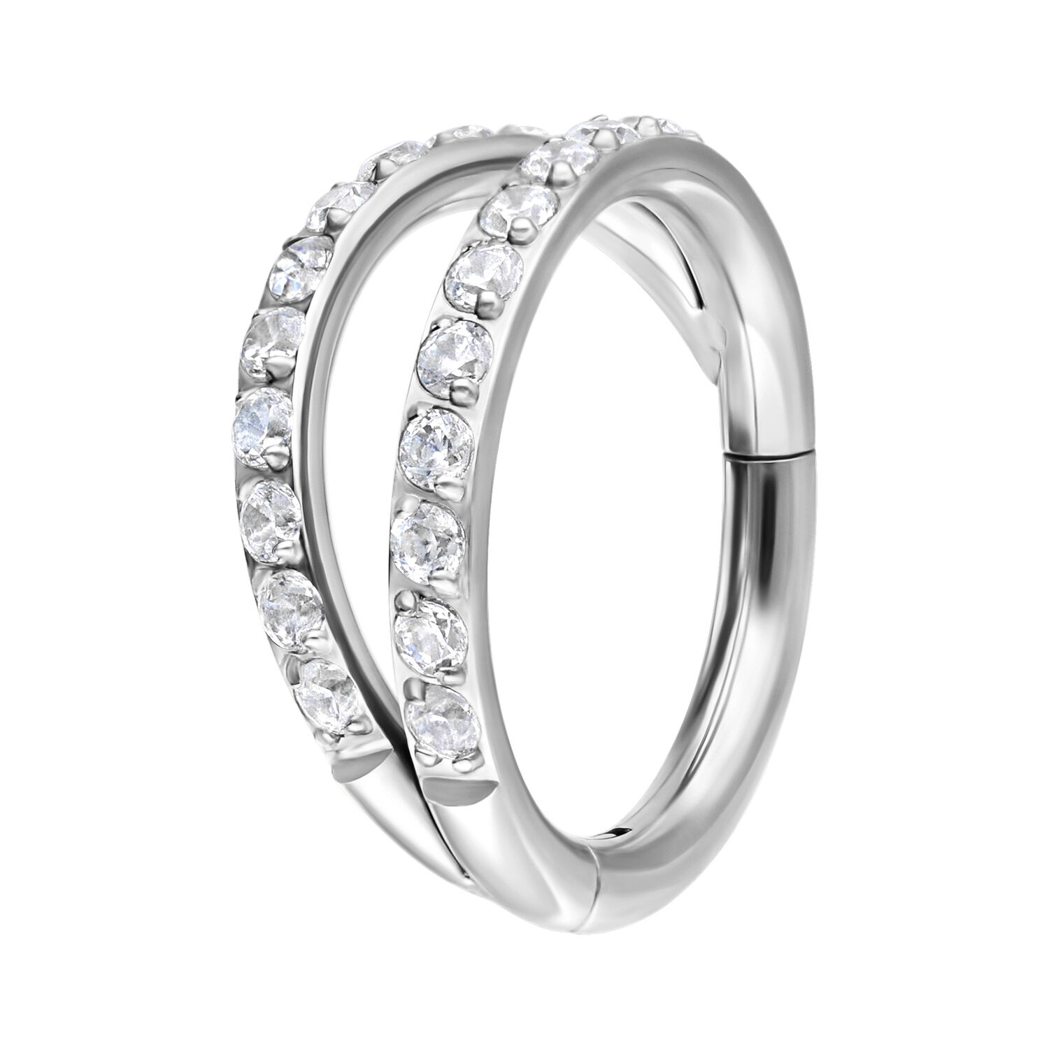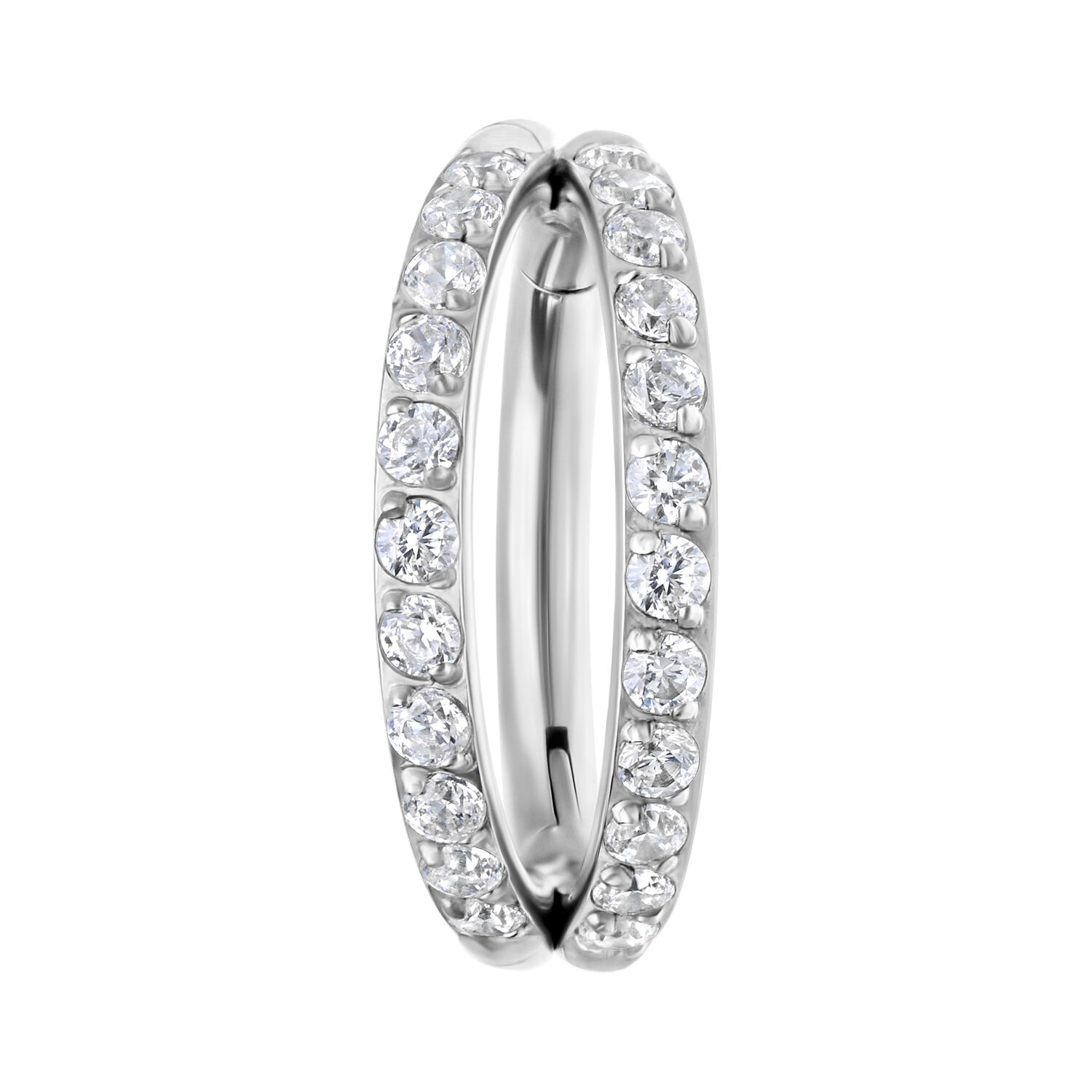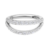 Our high-quality Double Row Crystal Clicker is particularly characterized by the many shimmering crystals that make it a real eye-catcher. Let your creativity run wild, as you can use this ring for almost any piercing. It is especially suitable for your nostril, lobe, or helix piercing. Thanks to its hinged closure, it’s super easy to change your piercing without any help. Reinvent yourself!