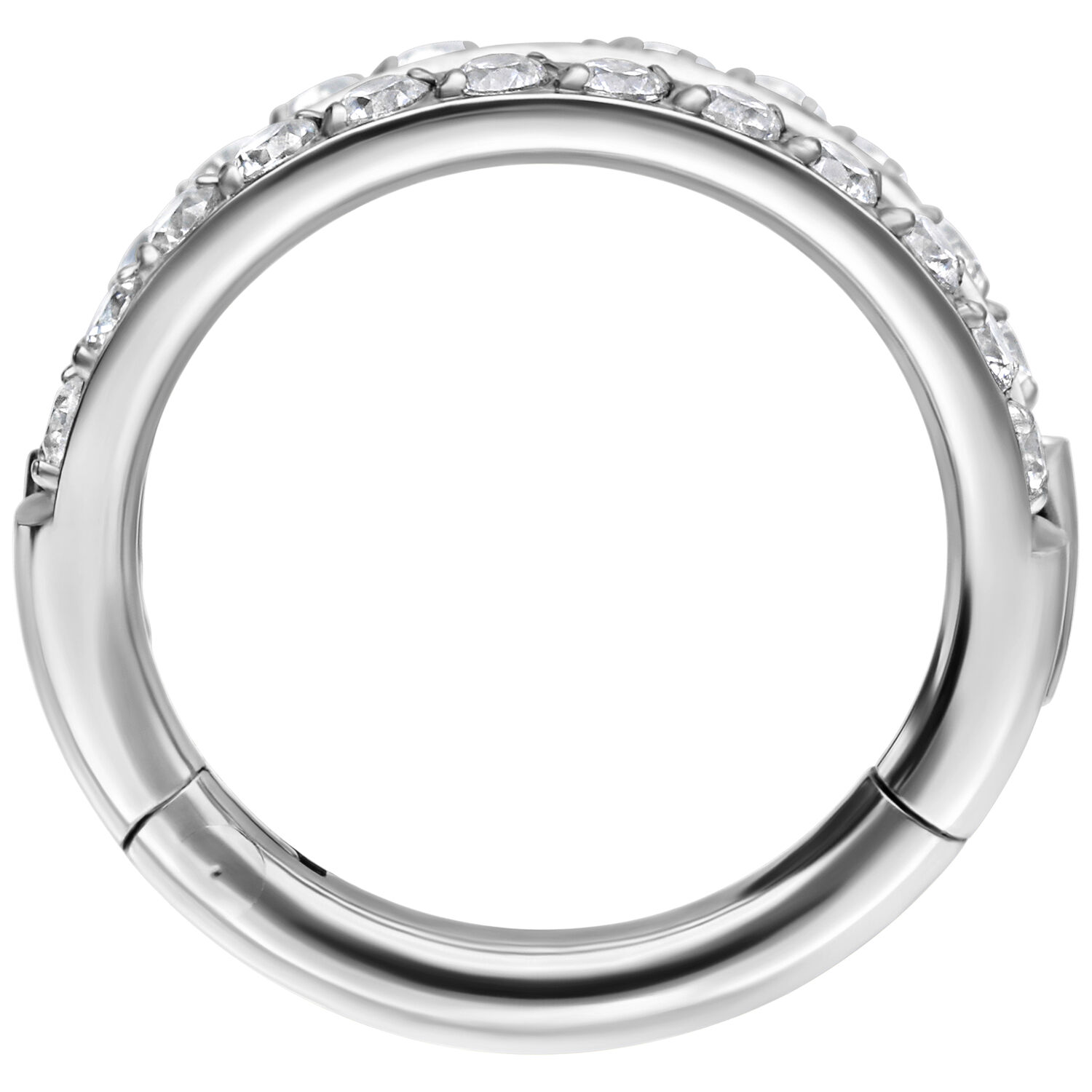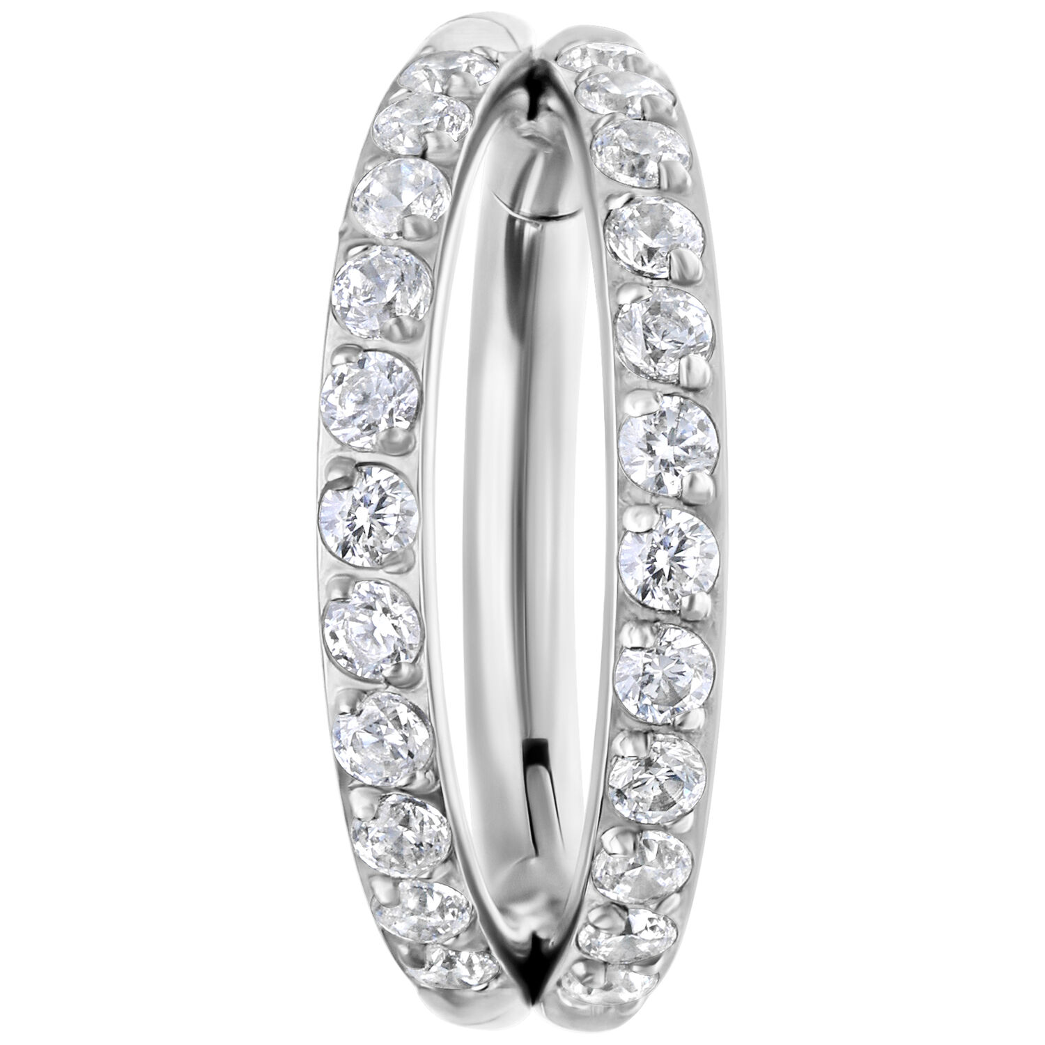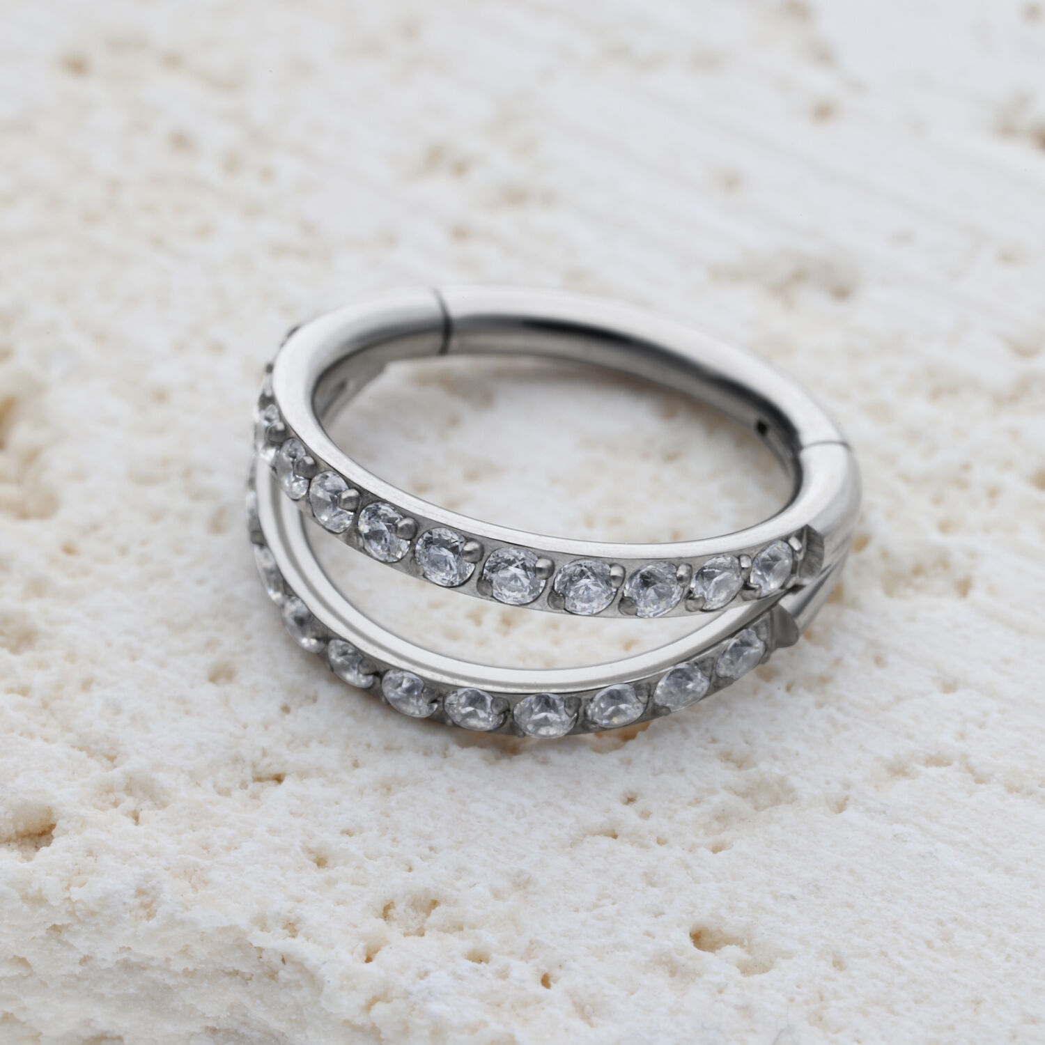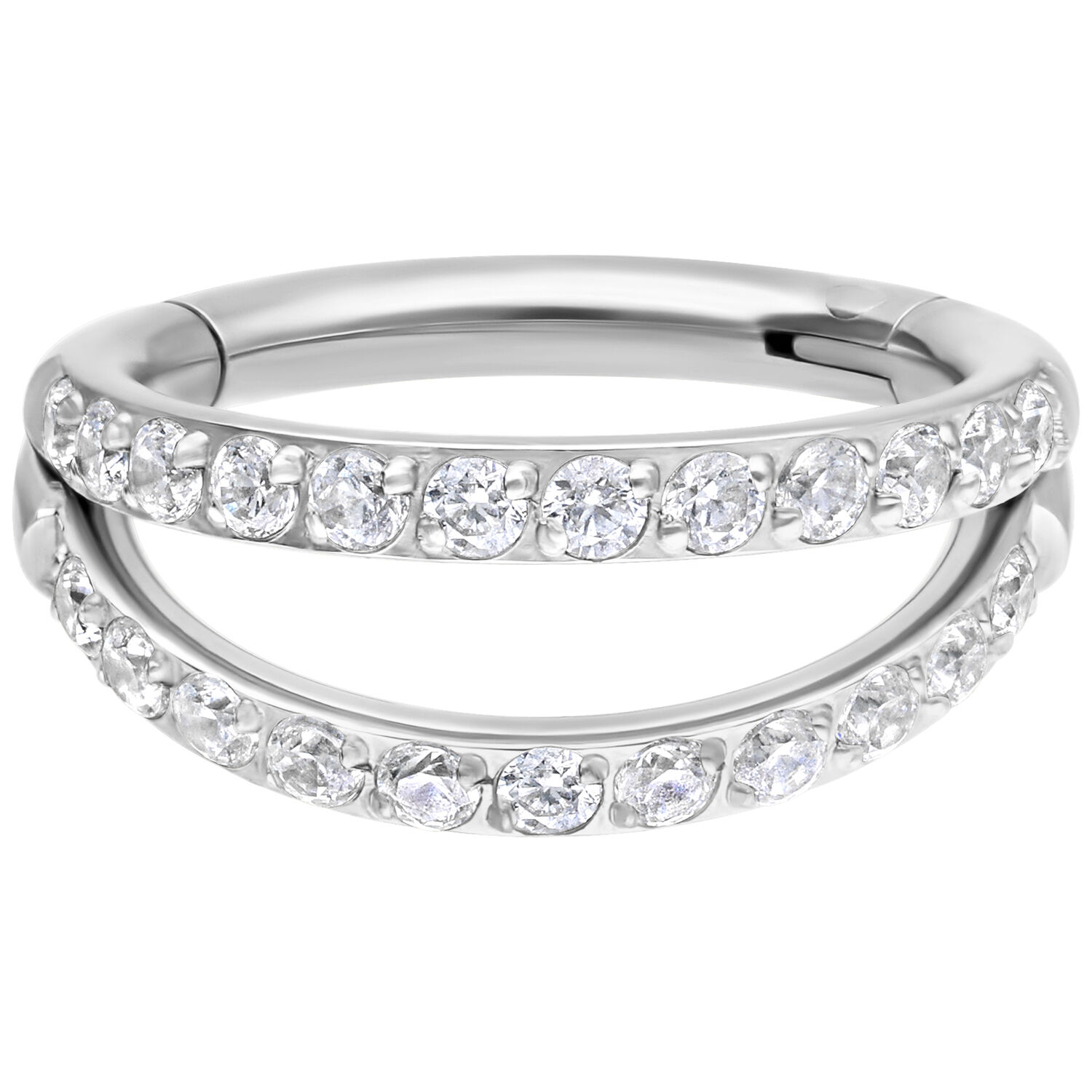 Our high-quality Double Row Crystal Clicker is particularly characterized by the many shimmering crystals that make it a real eye-catcher. Let your creativity run wild, as you can use this ring for almost any piercing. It is especially suitable for your nostril, lobe, or helix piercing. Thanks to its hinged closure, it’s super easy to change your piercing without any help. Reinvent yourself!