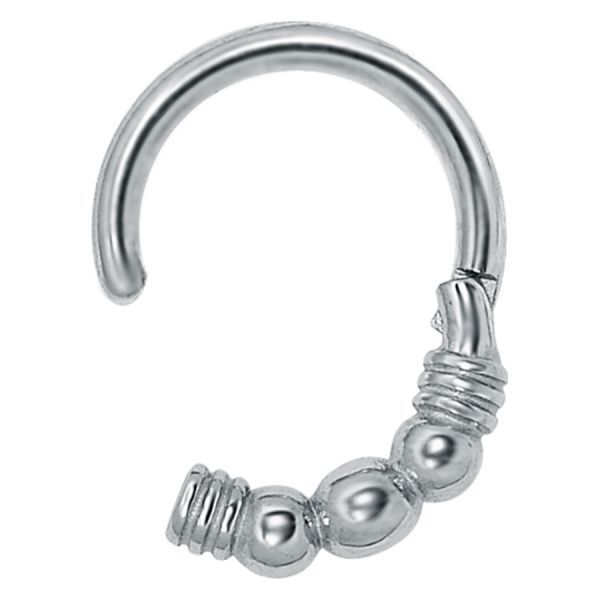 The hinged ringe is made of premium, silver-coloured steel and can be used for different piercings, such as nose, lip and ear piercing. Decorated with balls and other details, this hinged ring is an absolute eye-catcher compared to normal hinged rings!