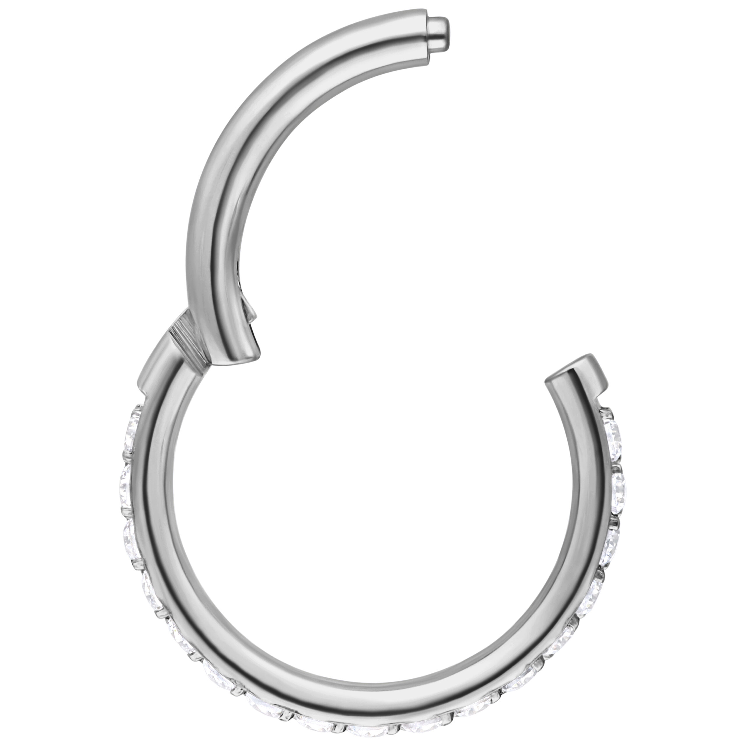 Our high-quality hinged rings are set with many classic crystals. Let your creativity run free, because you can use this ring for almost any piercing. It is especially suitable for your conch, helix and nose piercing. Due to its hinged closure, it is super easy to change your piercing without help.